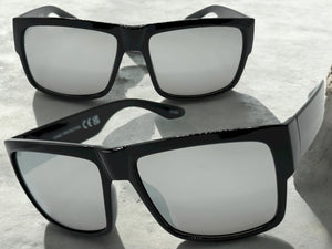 Classic Vintage Retro Hardcore Biker Gangster Style SUNGLASSES Thick Square Black Frame - Silver Lens 7232