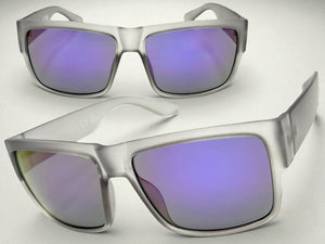 Classic Vintage Retro Hardcore Biker Gangster Style SUNGLASSES Thick Square Gray Frame - Purple Lens 7232
