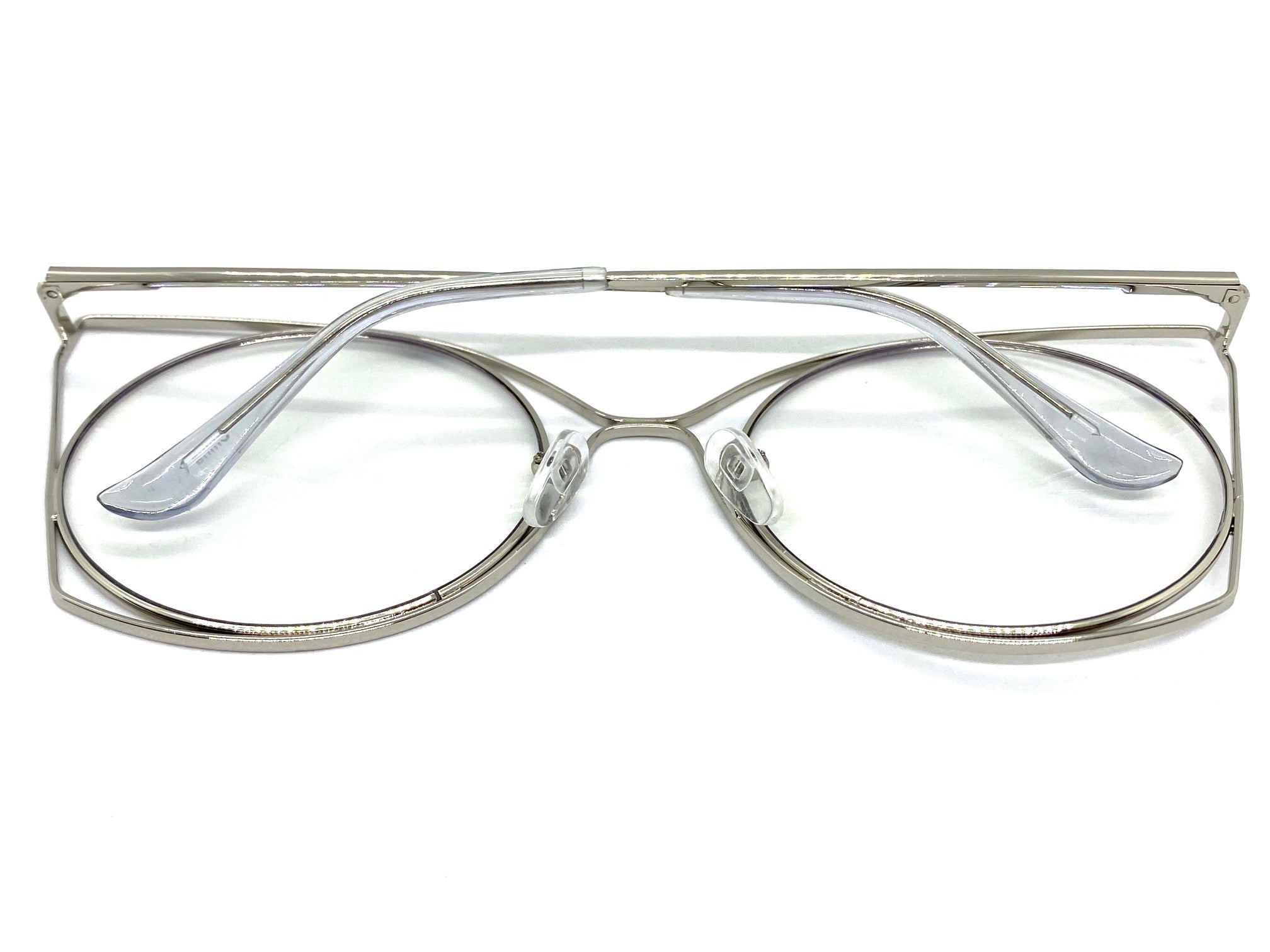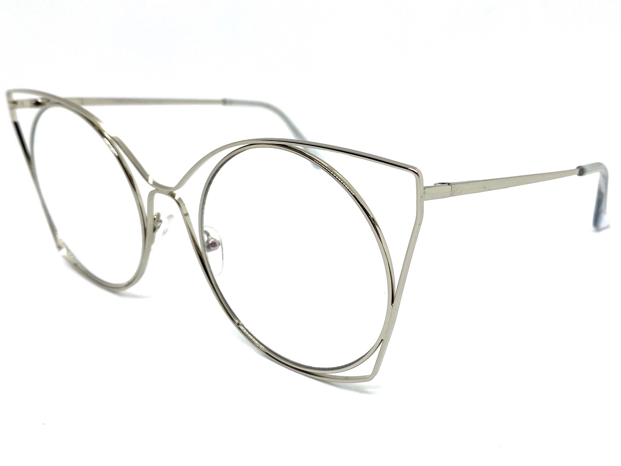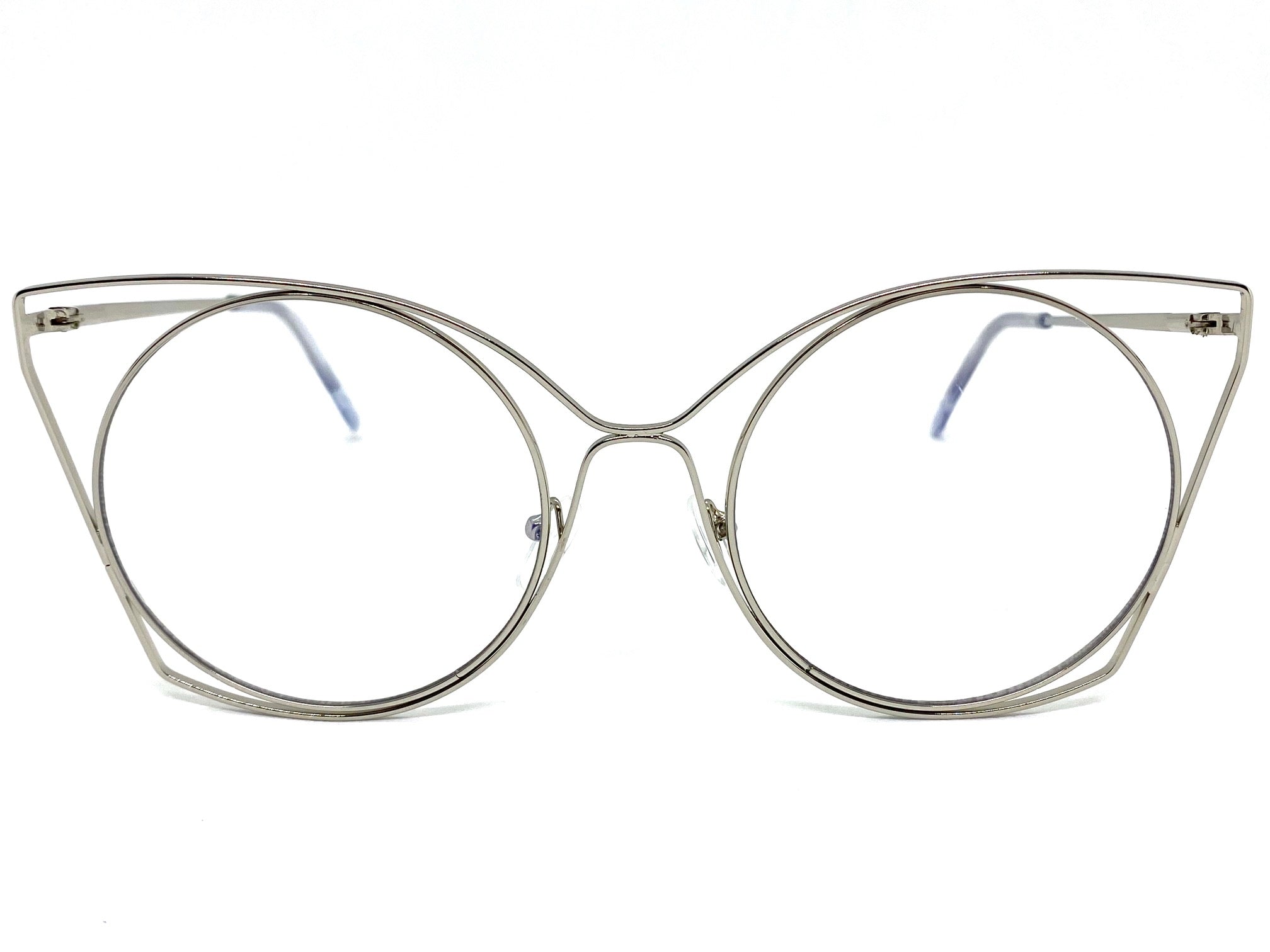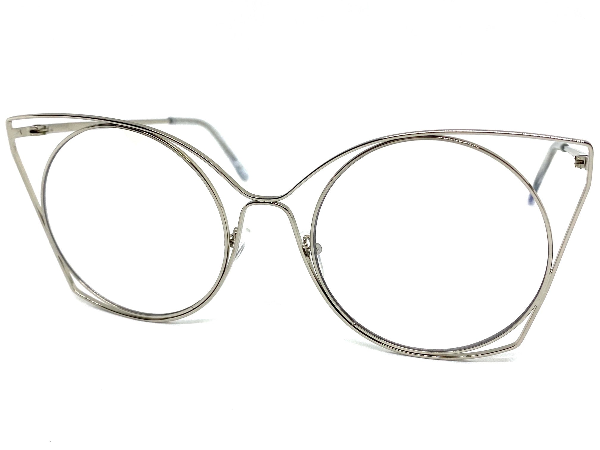 Oversized Exaggerated Retro Cat Eye Style Clear Lens EYEGLASSES Huge Silver Frame 4485