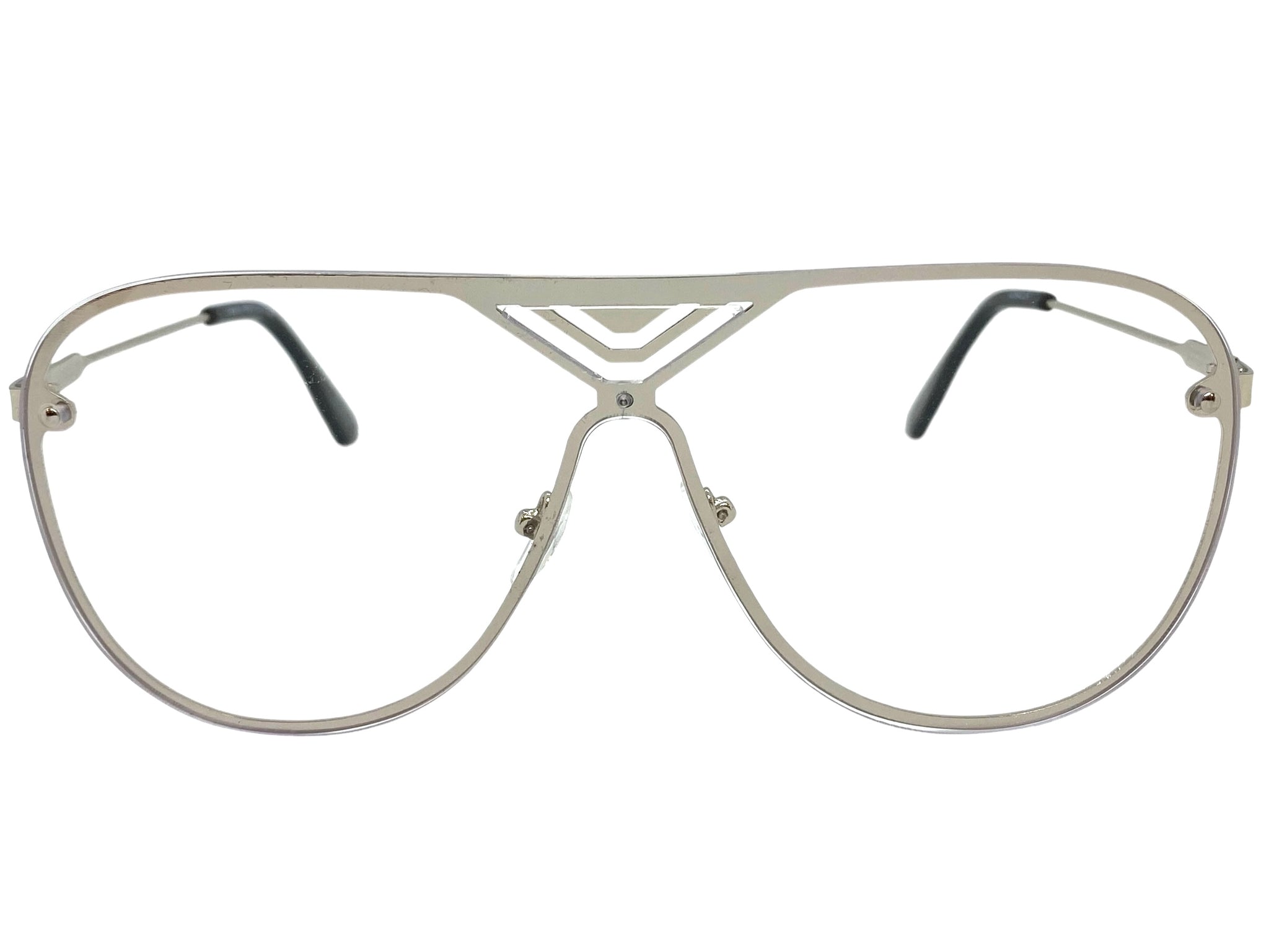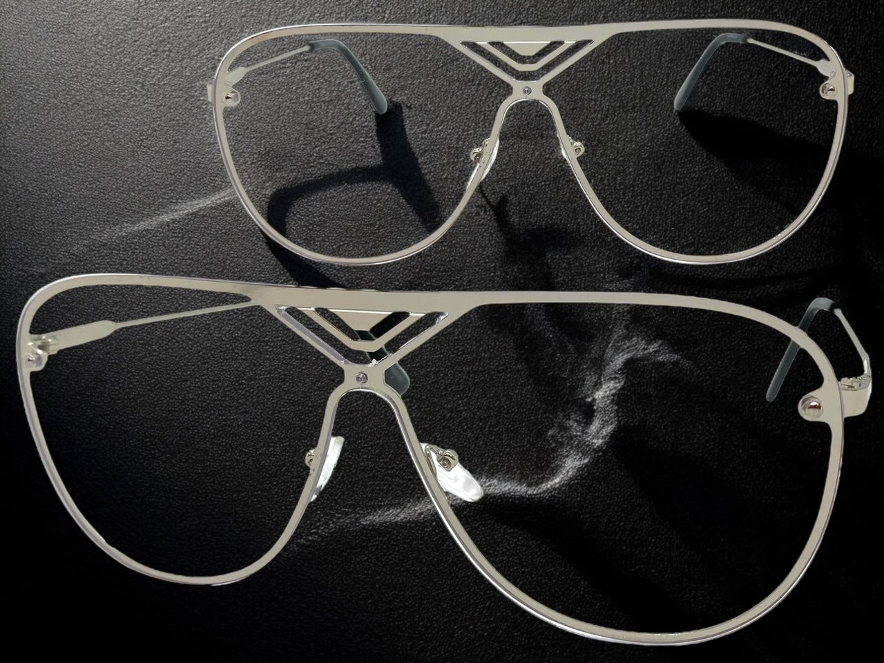 Oversized Modern Retro Shield Style Clear Lens SUNGLASSES Large Silver Frame 4294