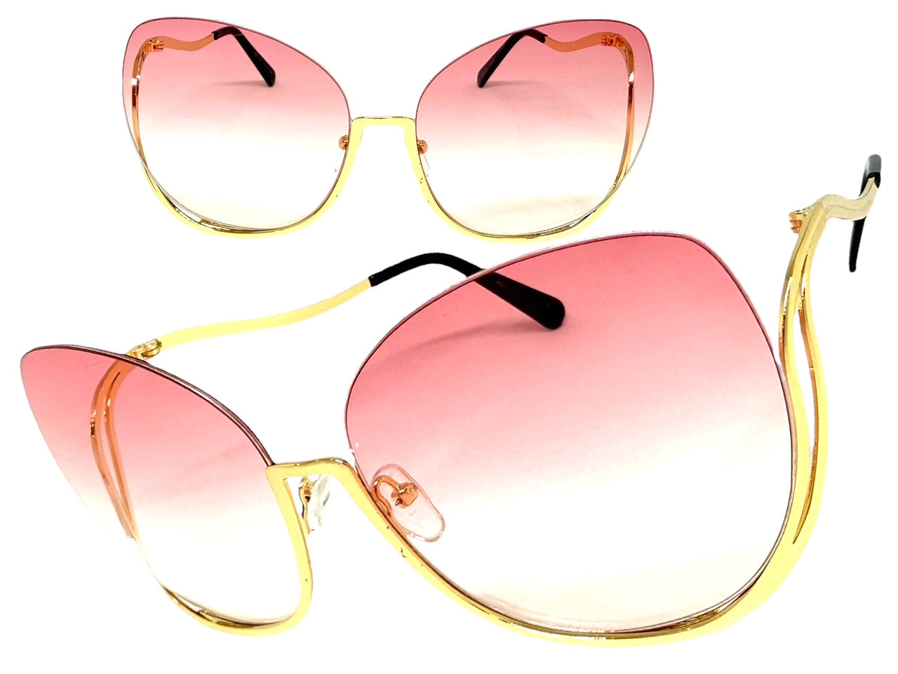 Oversized Exaggerated Classic Vintage Retro Style SUNGLASSES Large Gold Frame - Pink Lens A315