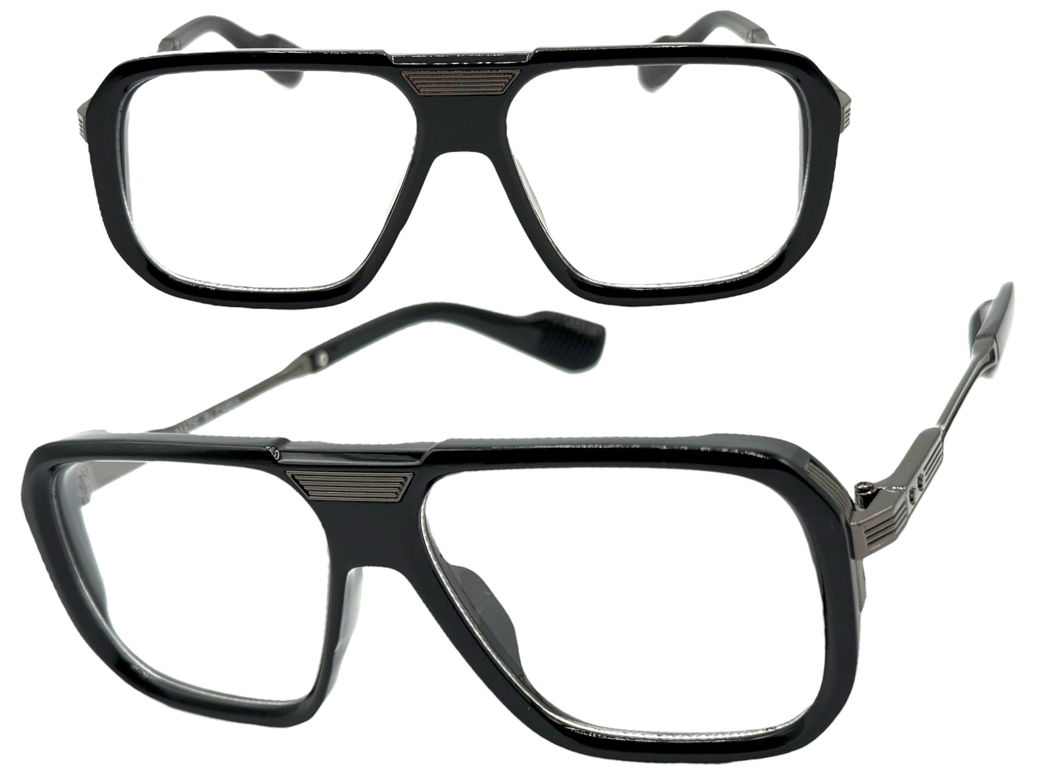 Classic Vintage Retro Hip Hop Rapper Style Clear Lens EYEGLASSES Black & Gunmetal Frame 76006