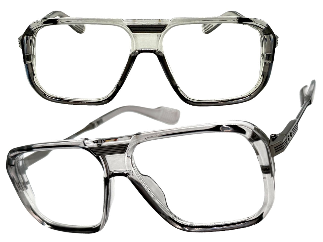 Classic Vintage Retro Hip Hop Rapper Style Clear Lens EYEGLASSES Gray & Gunmetal Frame 76006