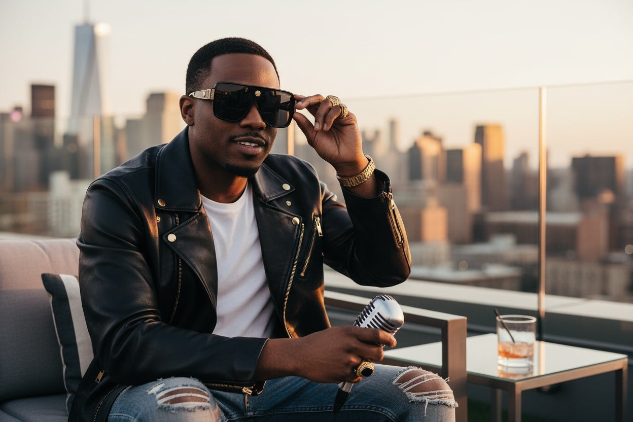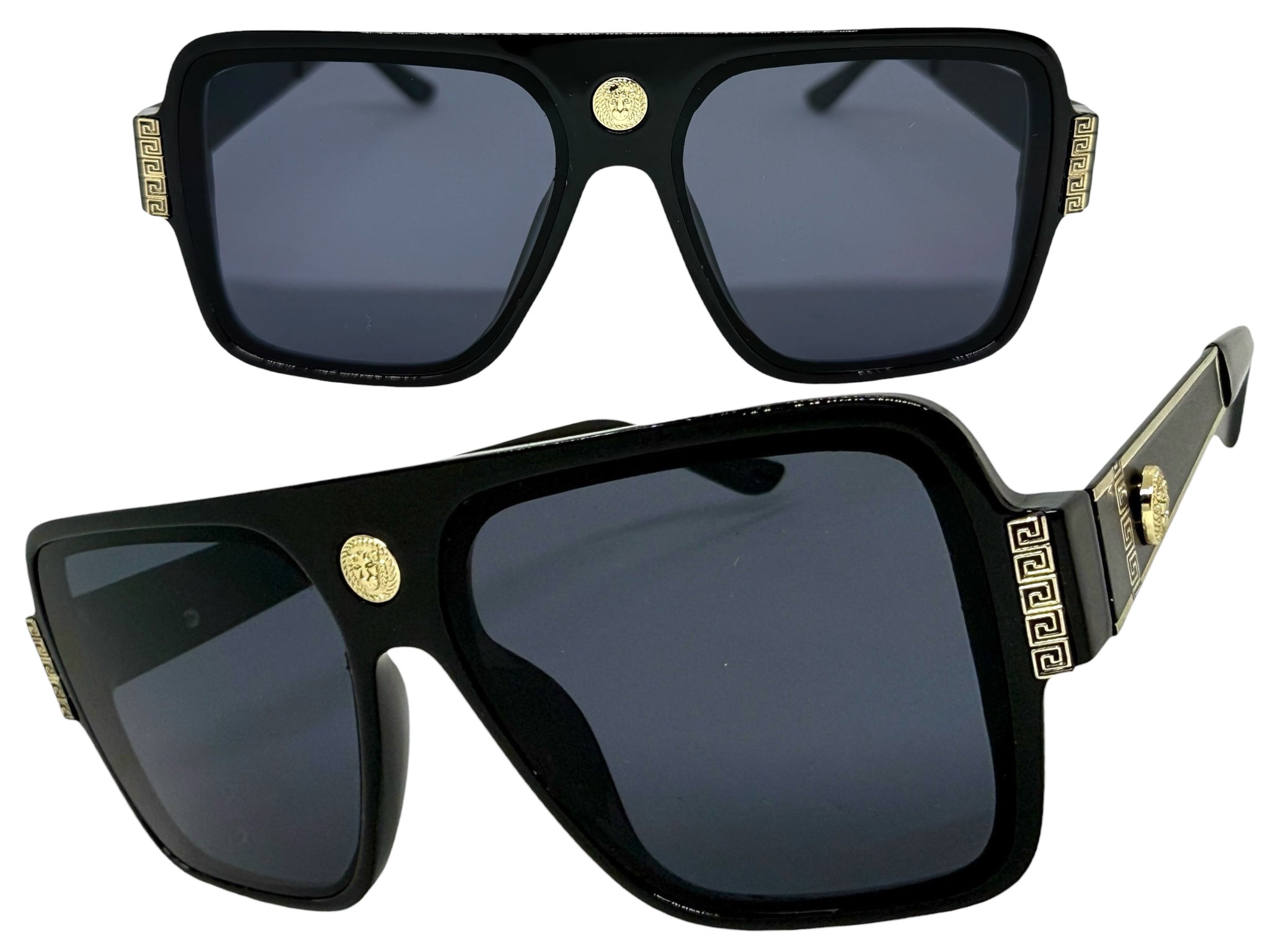 Classic Vintage Retro Luxury Hip Hop Rapper Style SUNGLASSES Large Black & Gold Frame 3078