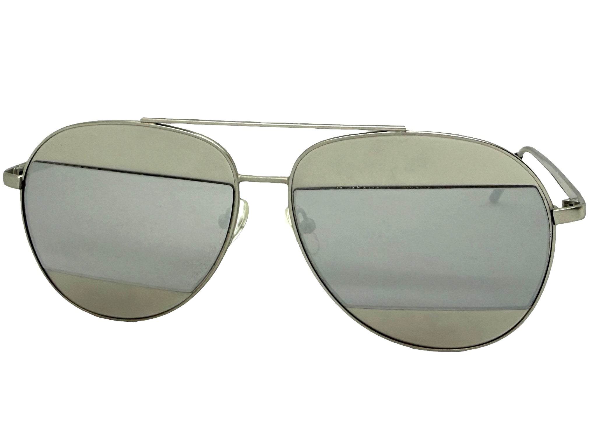 Classic Vintage Retro Style SUNGLASSES Silver Metal Frame - Chrome Lens AB227