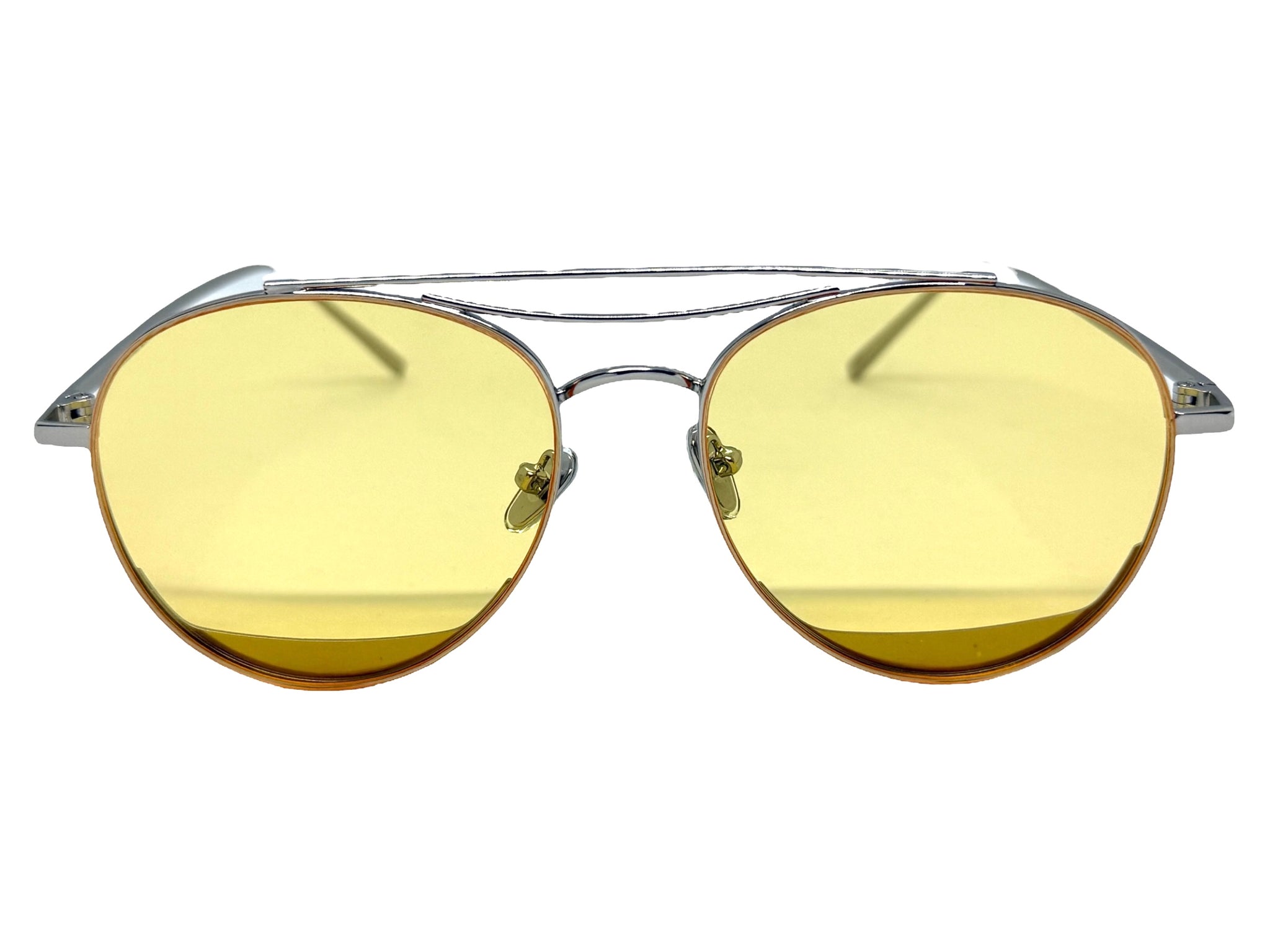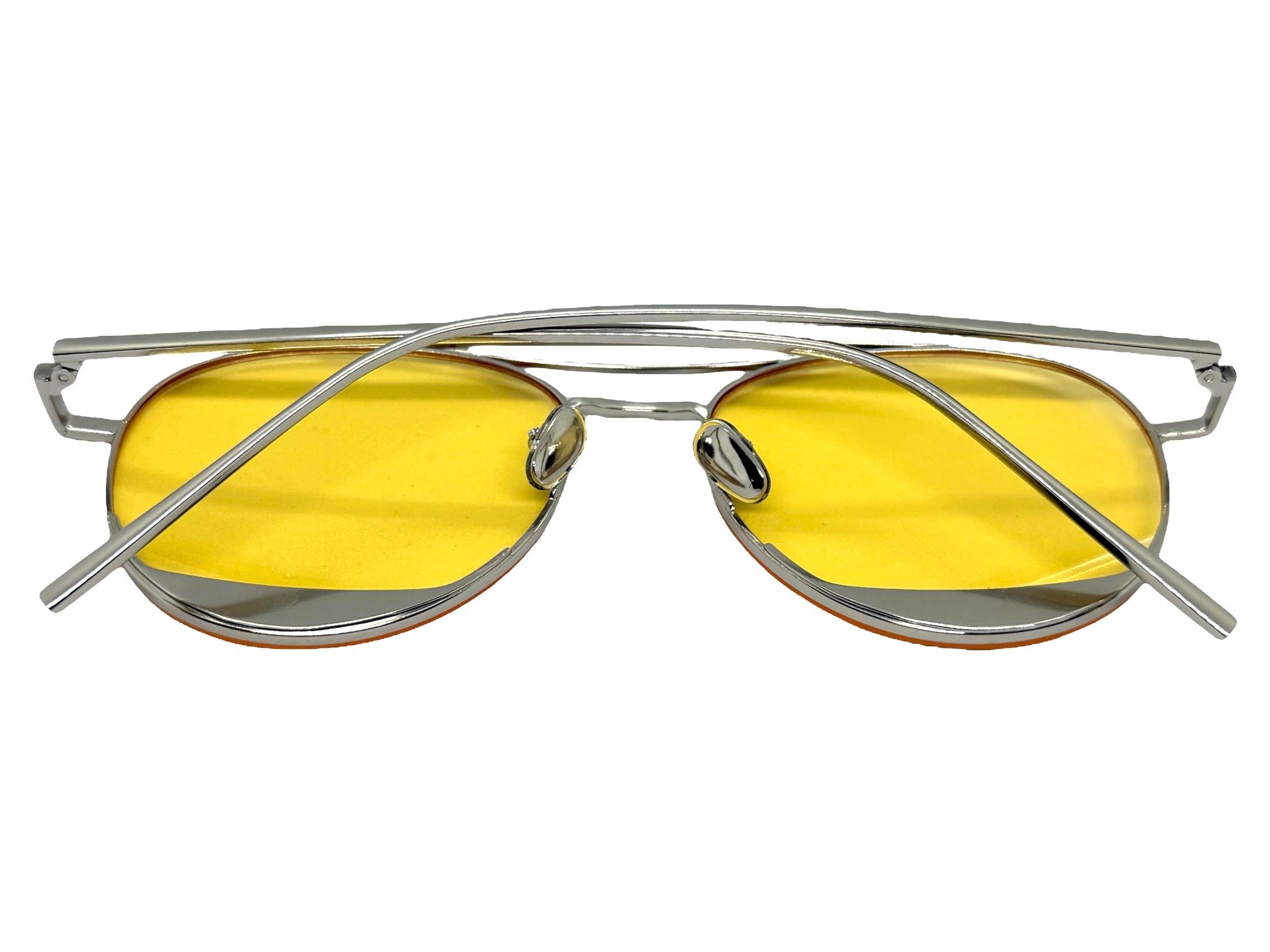 Classic Vintage Retro Style SUNGLASSES Silver Metal Frame - Yellow Lens 7209