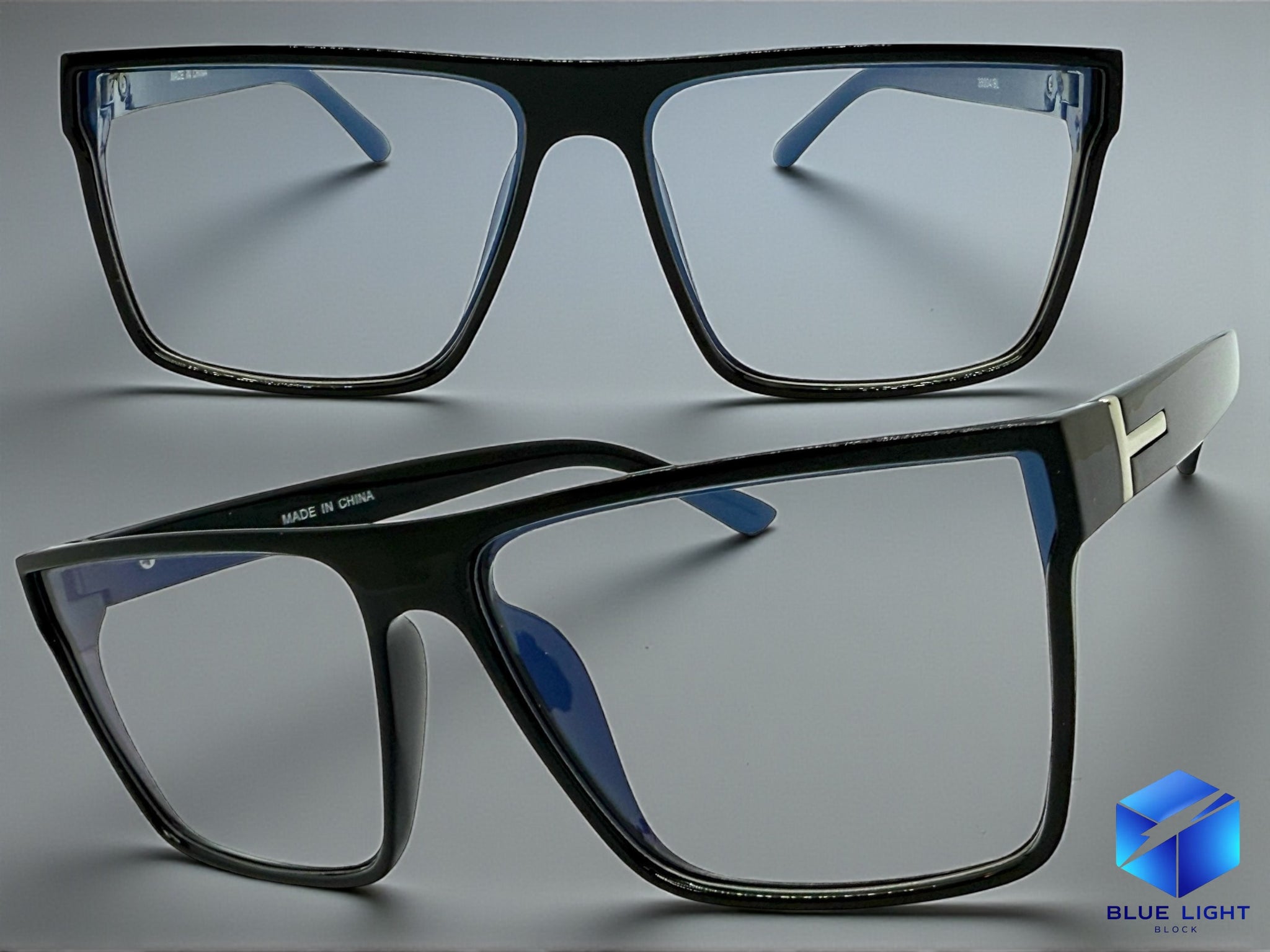 Classy Contemporary Modern Style Clear Lens Blue Light Block Computer EYEGLASSES Black Frame 35004