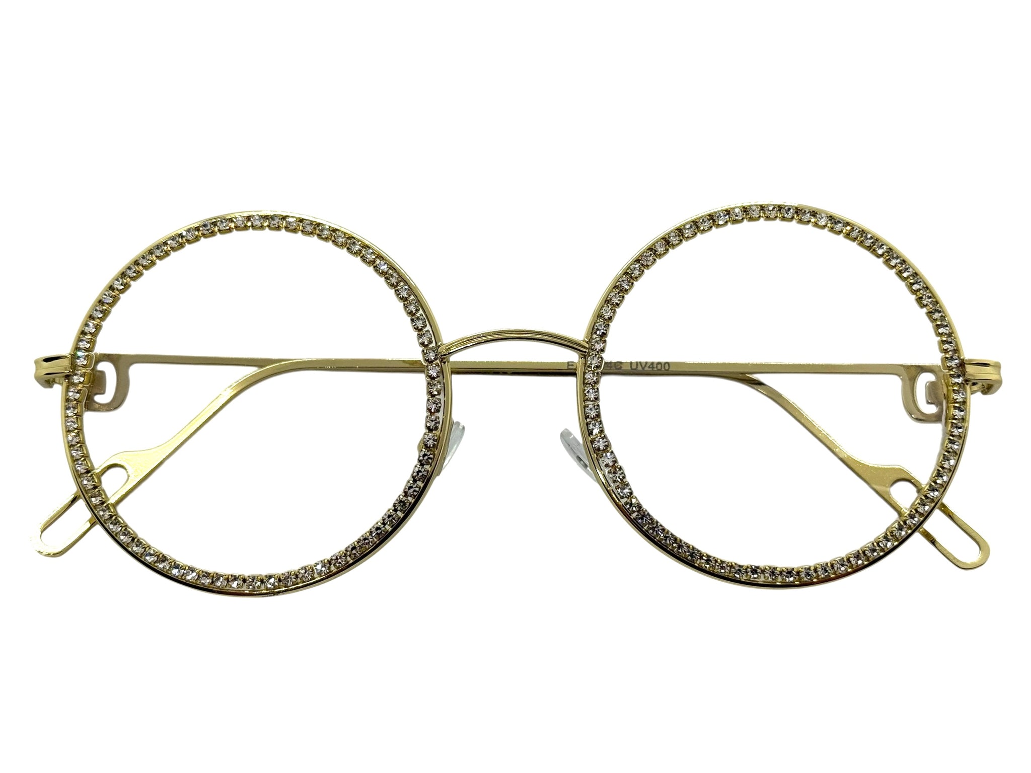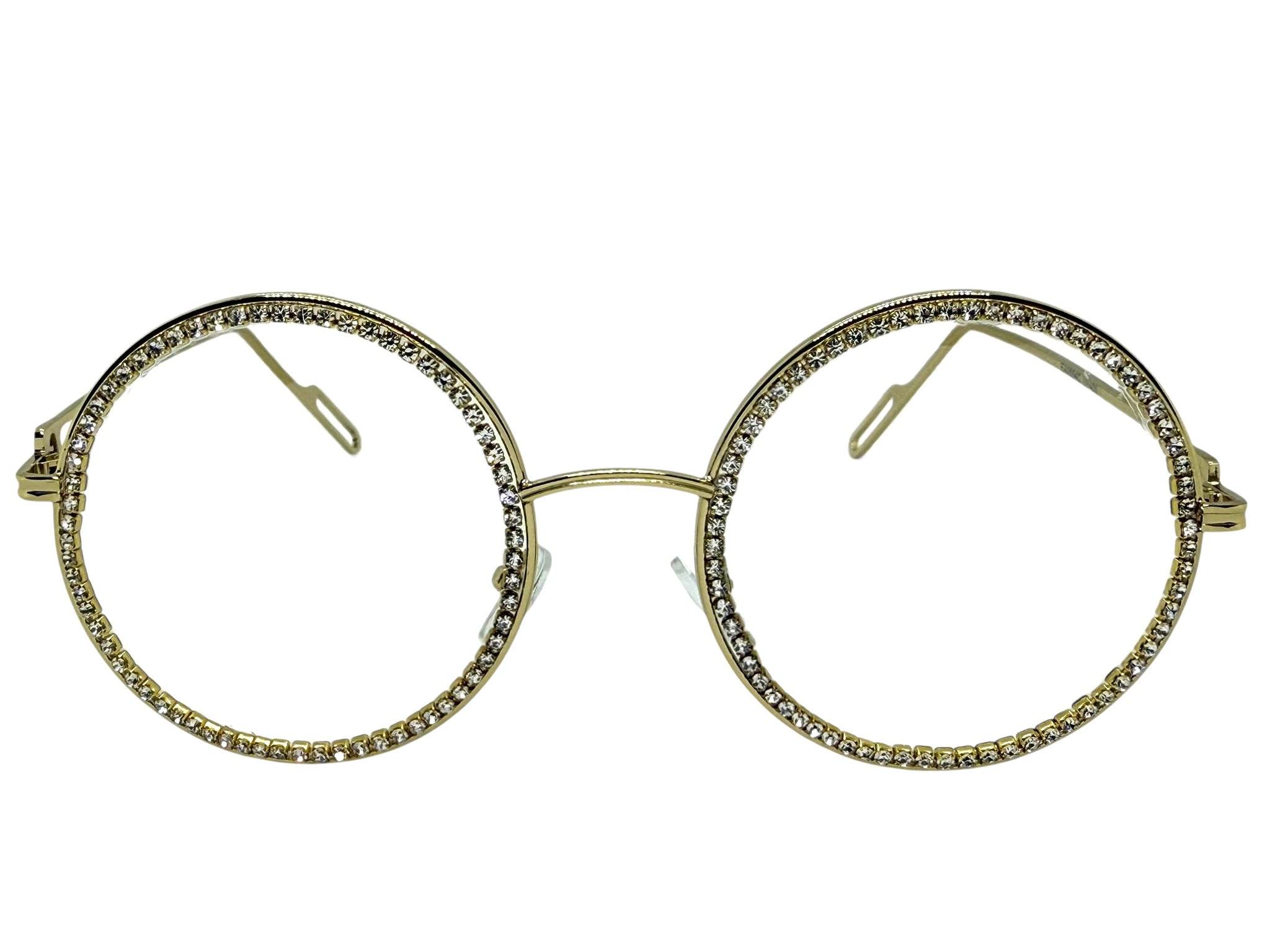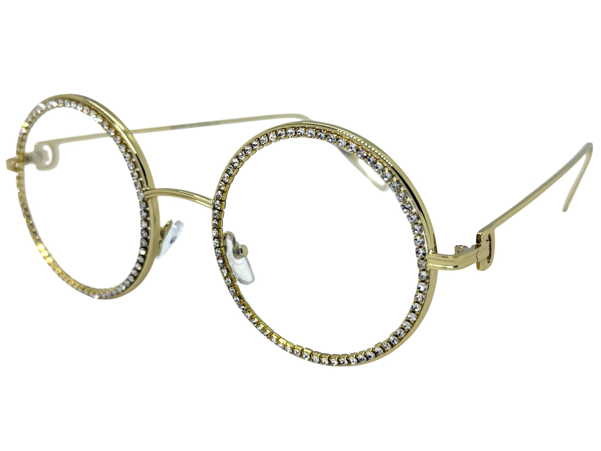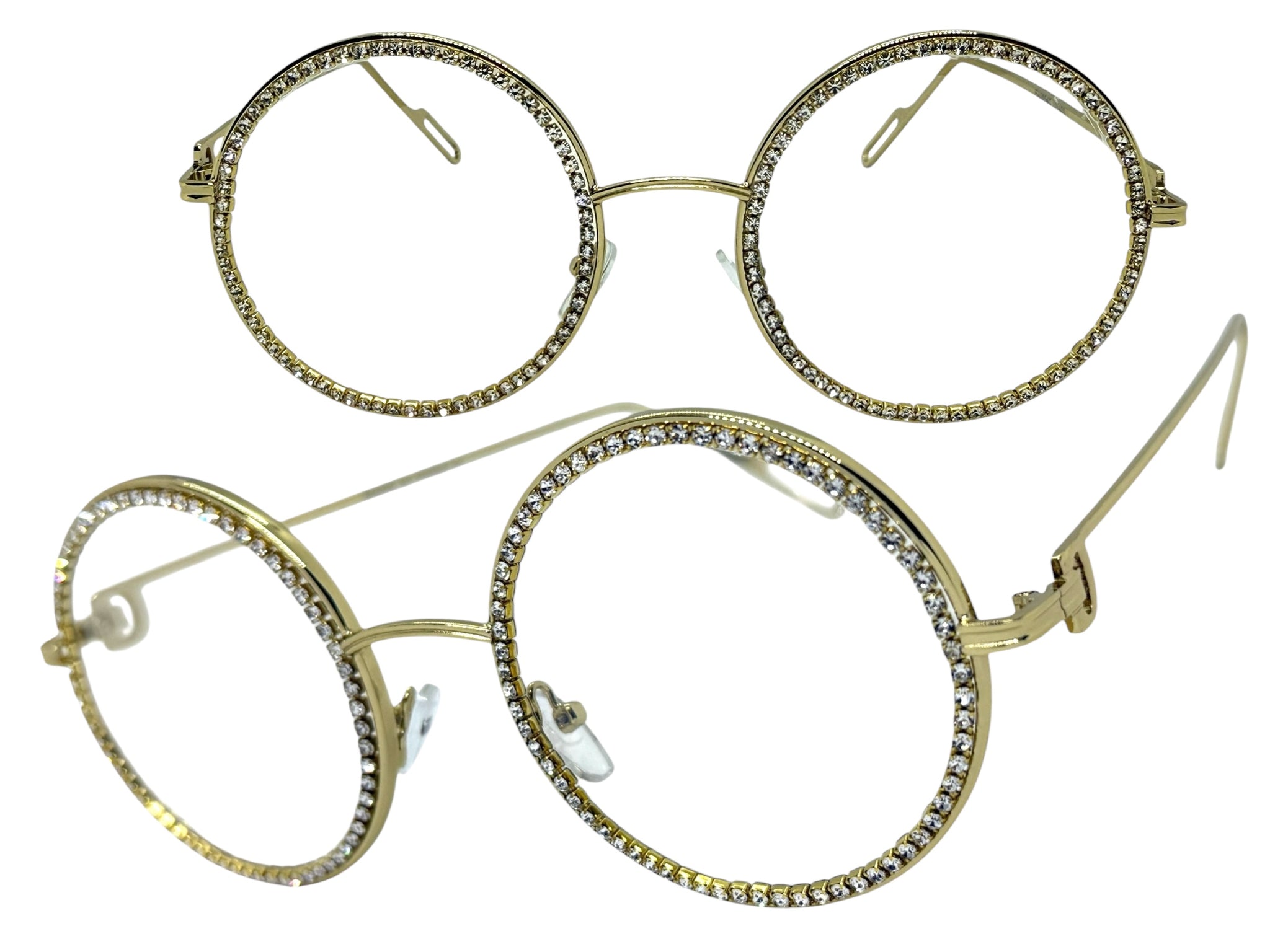 Classy Elegant Luxury Modern Hip Hop Style Bling EYEGLASSES Large Round Gold Frame E0654