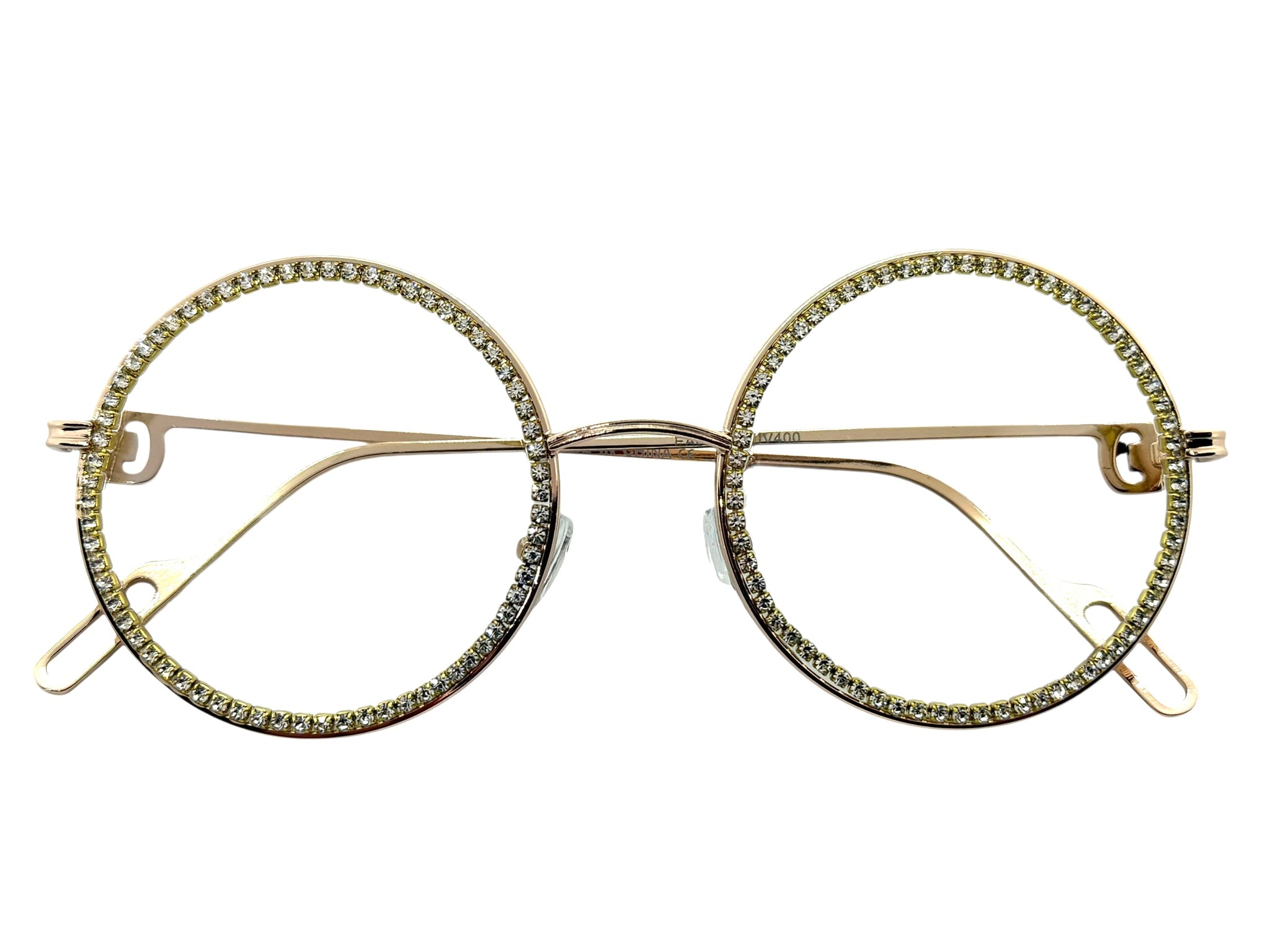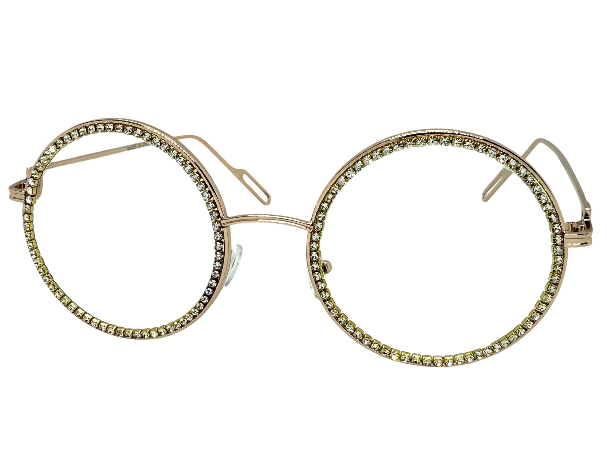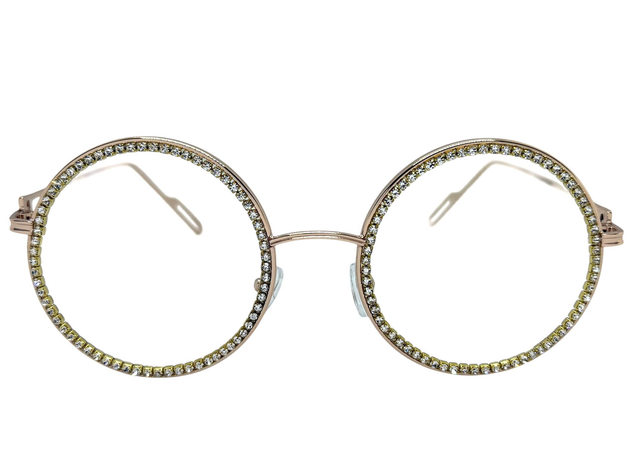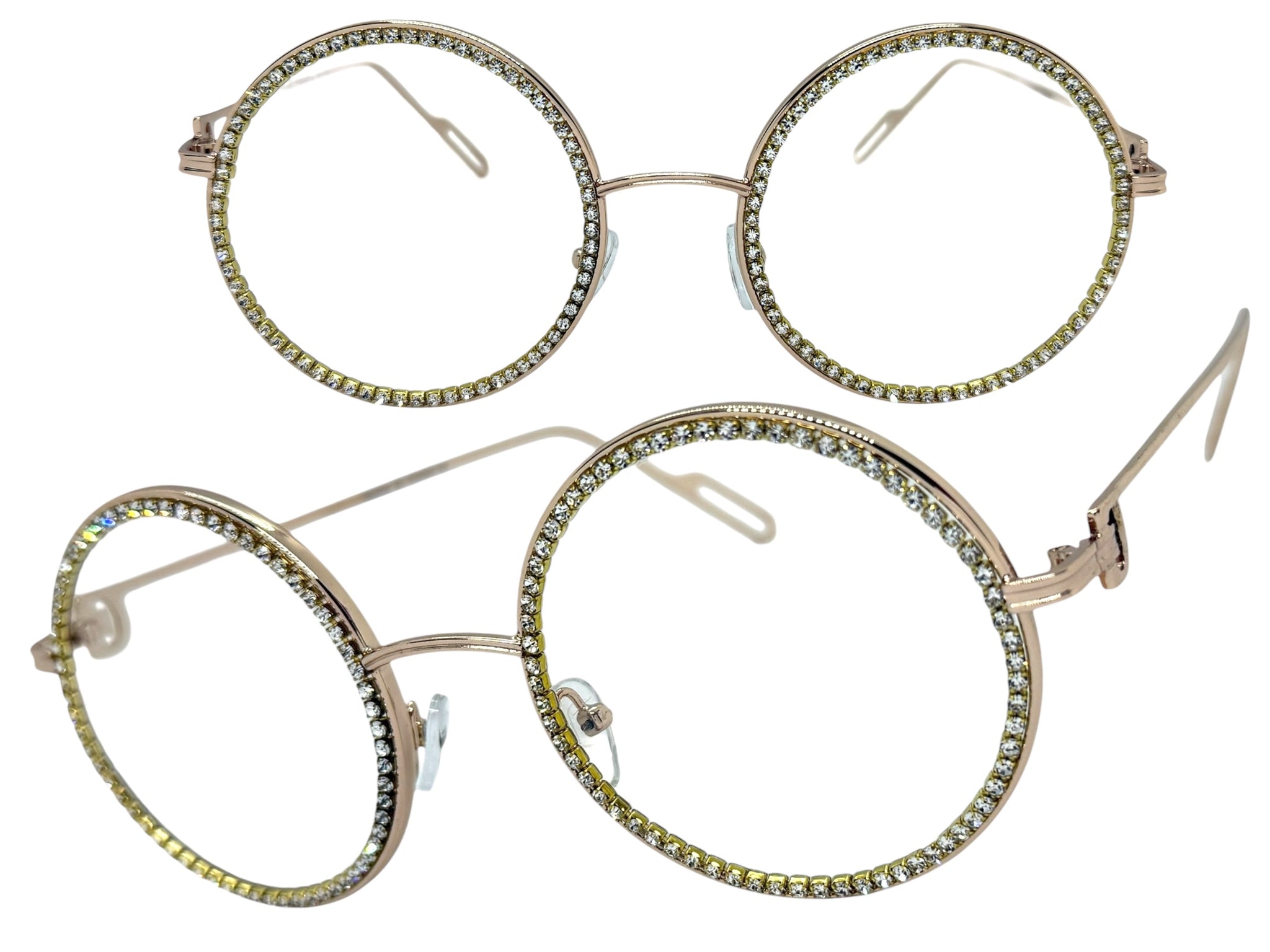 Classy Elegant Luxury Modern Hip Hop Style Bling EYEGLASSES Large Round Rose Gold Frame E0654