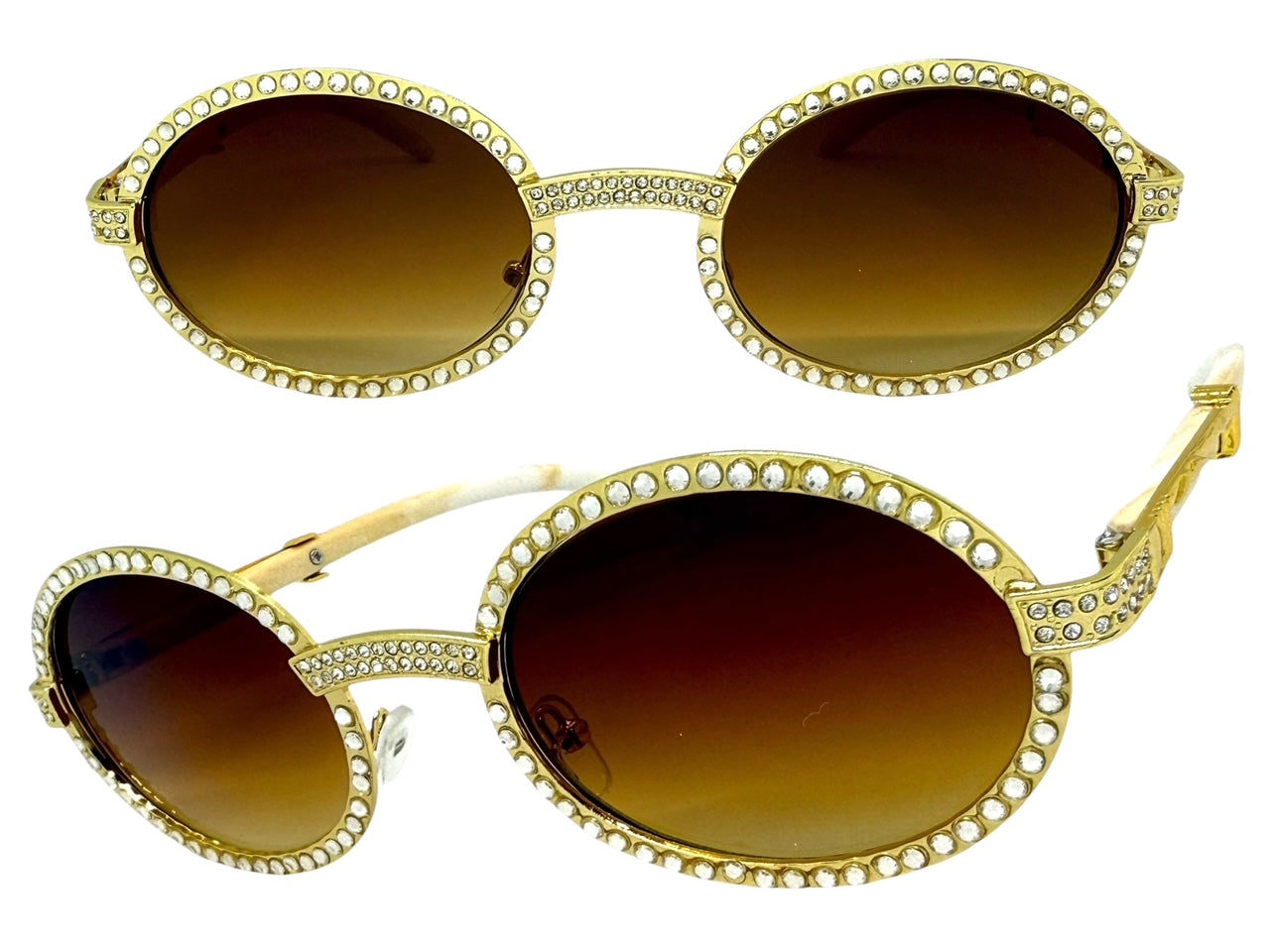 Classy Elegant Luxury Modern Hip Hop Style Bling SUNGLASSES Large Oval Gold & Marble Frame E0652