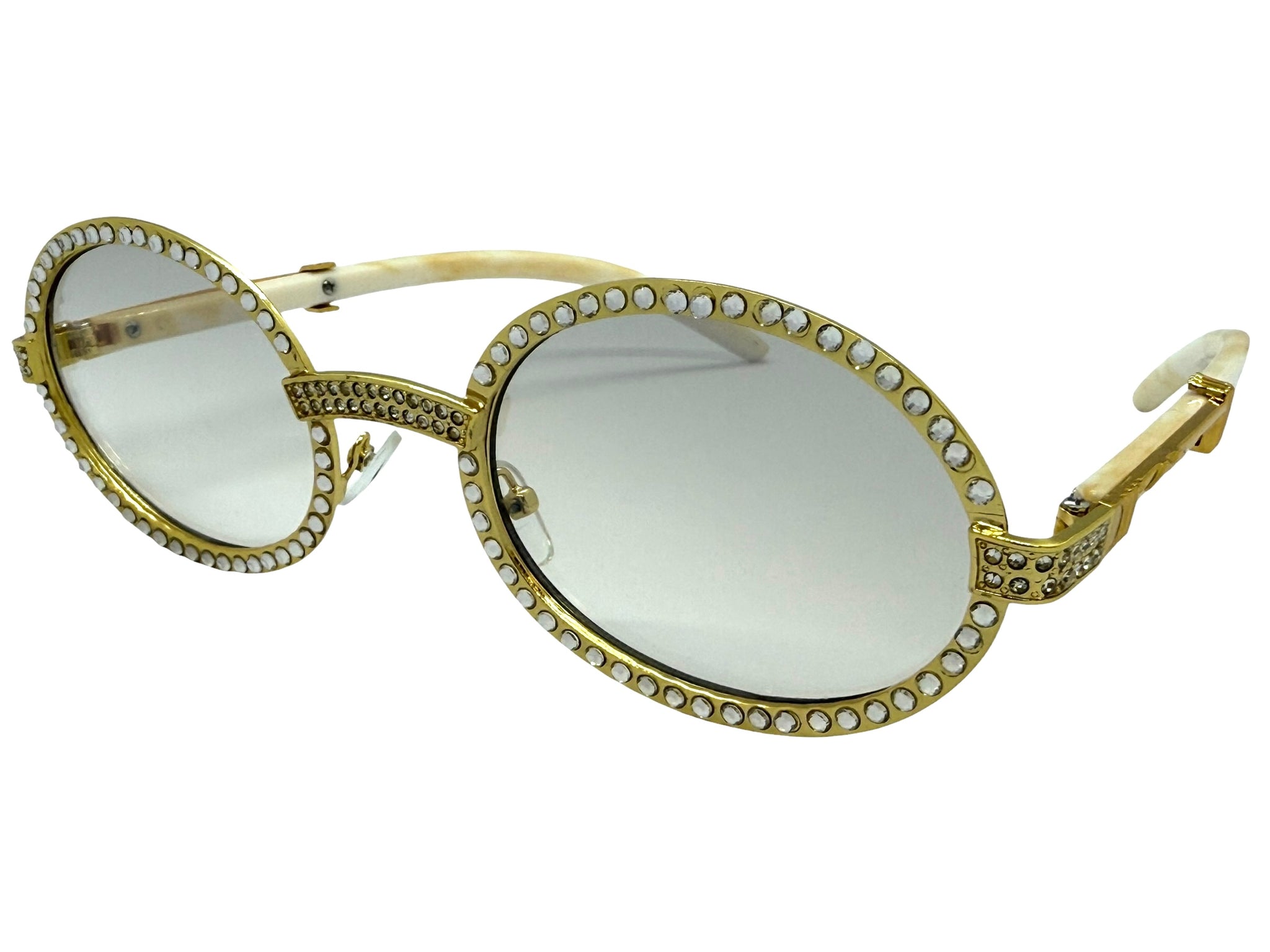 Classy Elegant Luxury Modern Hip Hop Style Bling SUNGLASSES Large Oval Gold & Marble Frame E0652