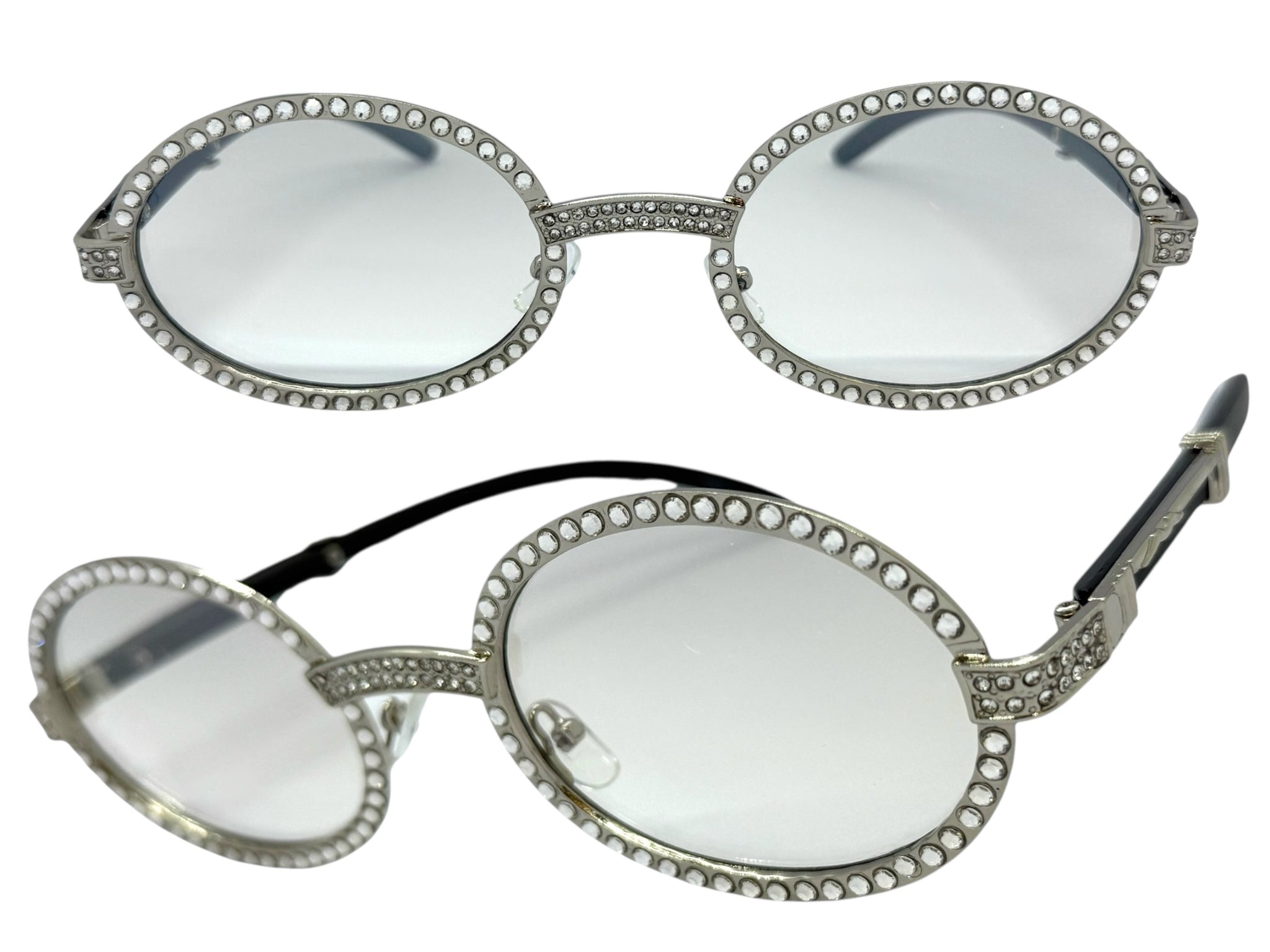 Classy Elegant Luxury Modern Hip Hop Style Bling SUNGLASSES Large Oval Silver & Faux Wooden Frame E065
