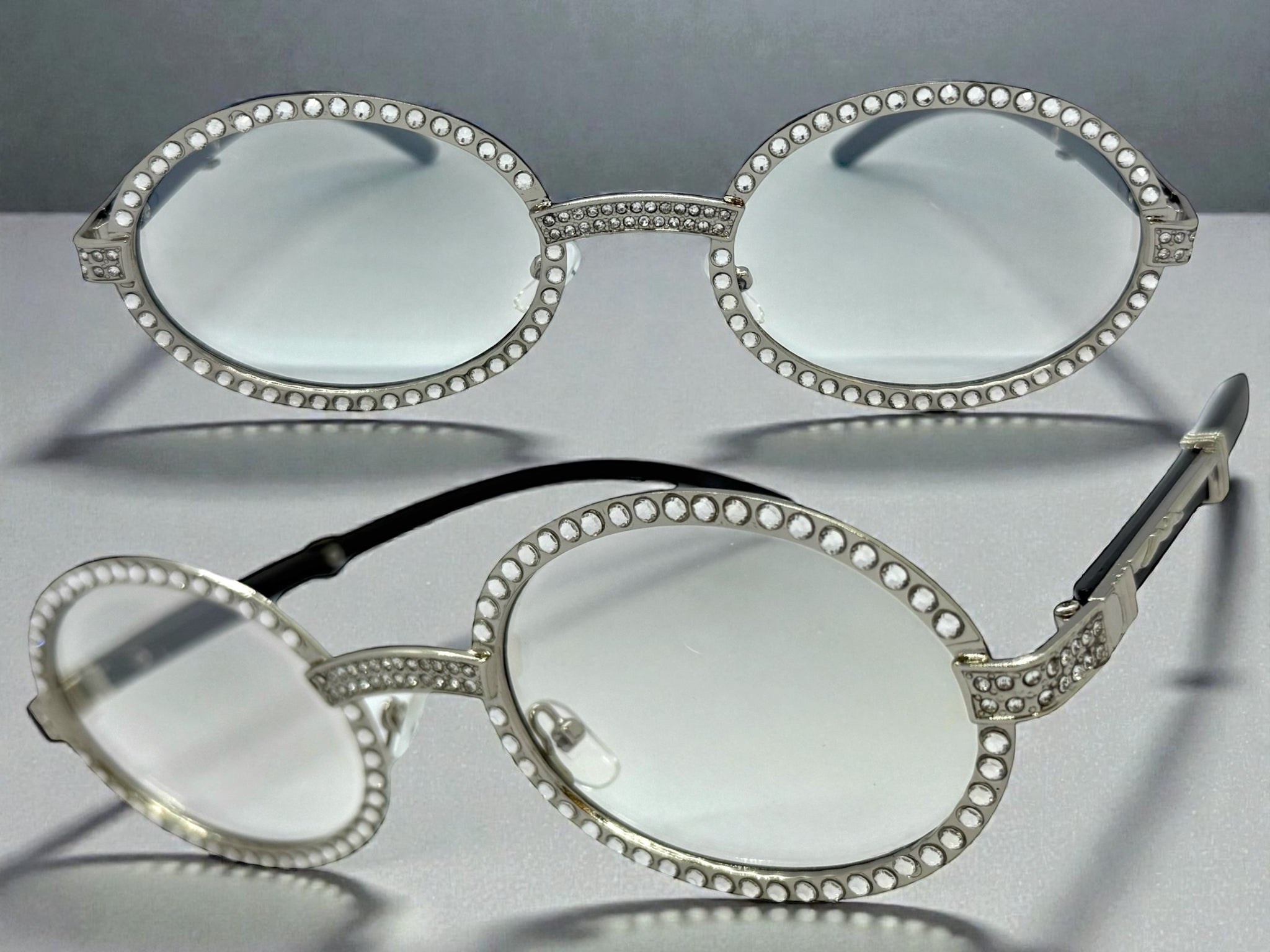 Silver Frame Embellished with Sparkling Crystals & Dark Faux Wooden Arms