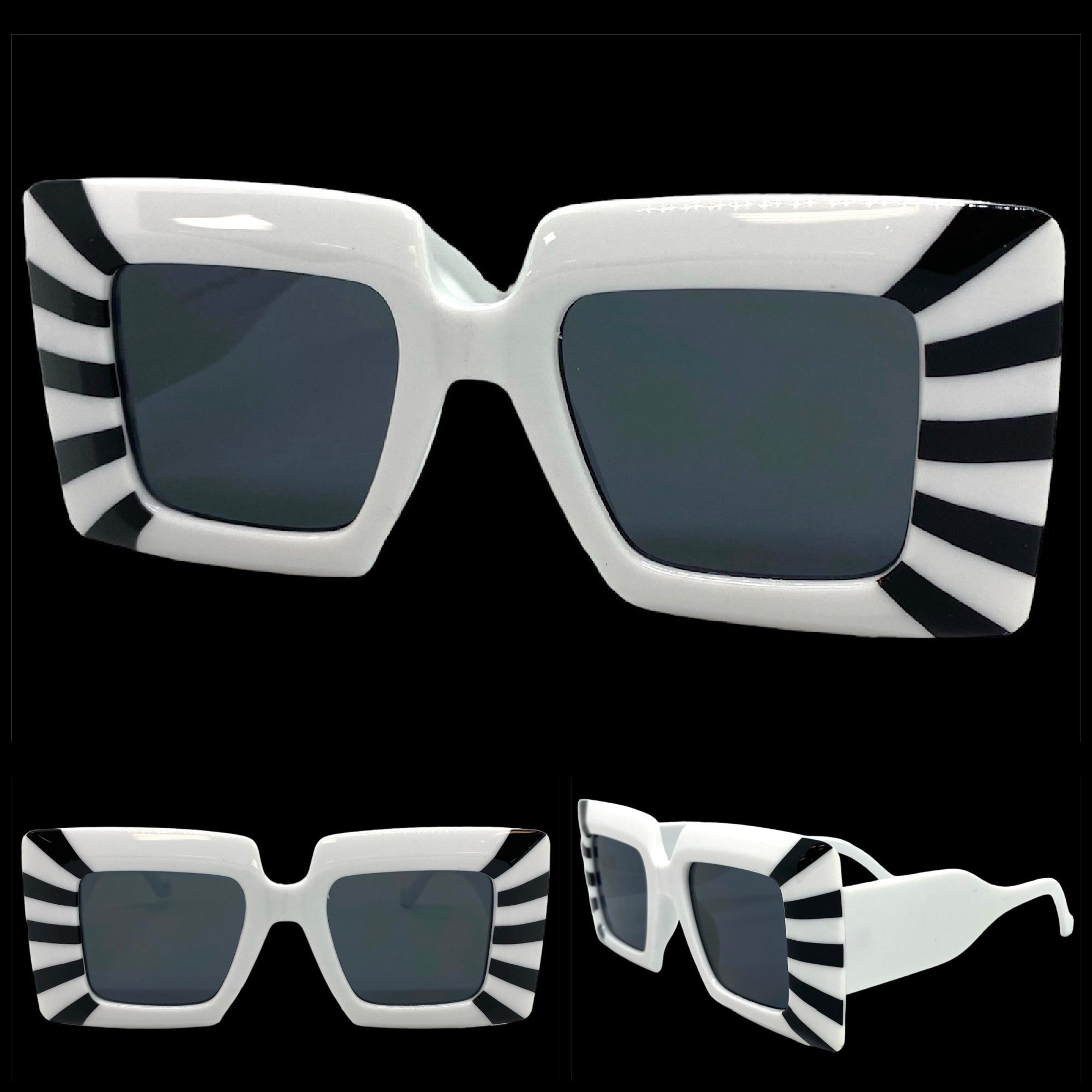 Exaggerated Vintage Retro Style SUNGLASSES Thick Square White Frame 80590