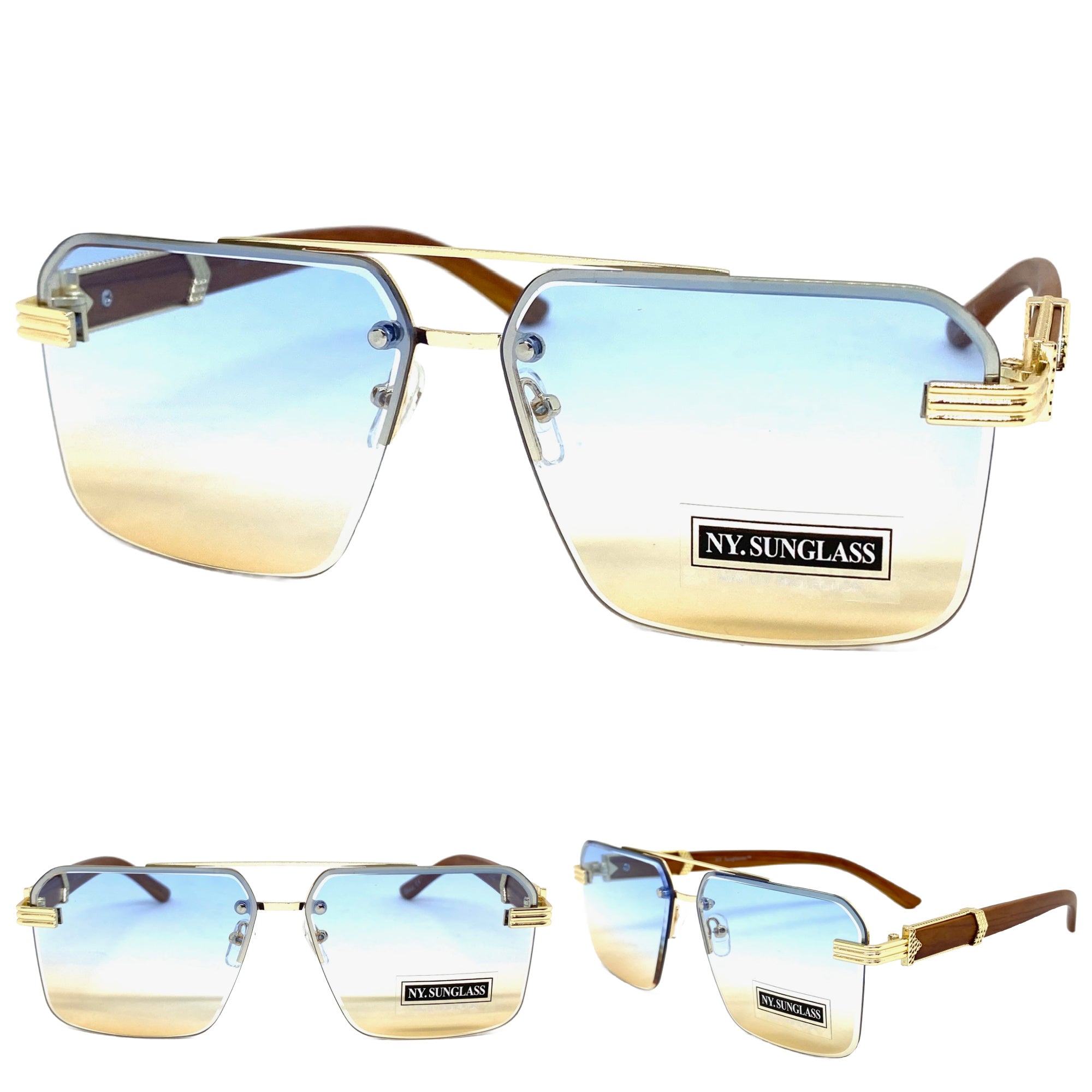 Men's Classy Elegant Luxury Designer Hip Hop Style SUNGLASSES Gold & Wooden Frame 8365