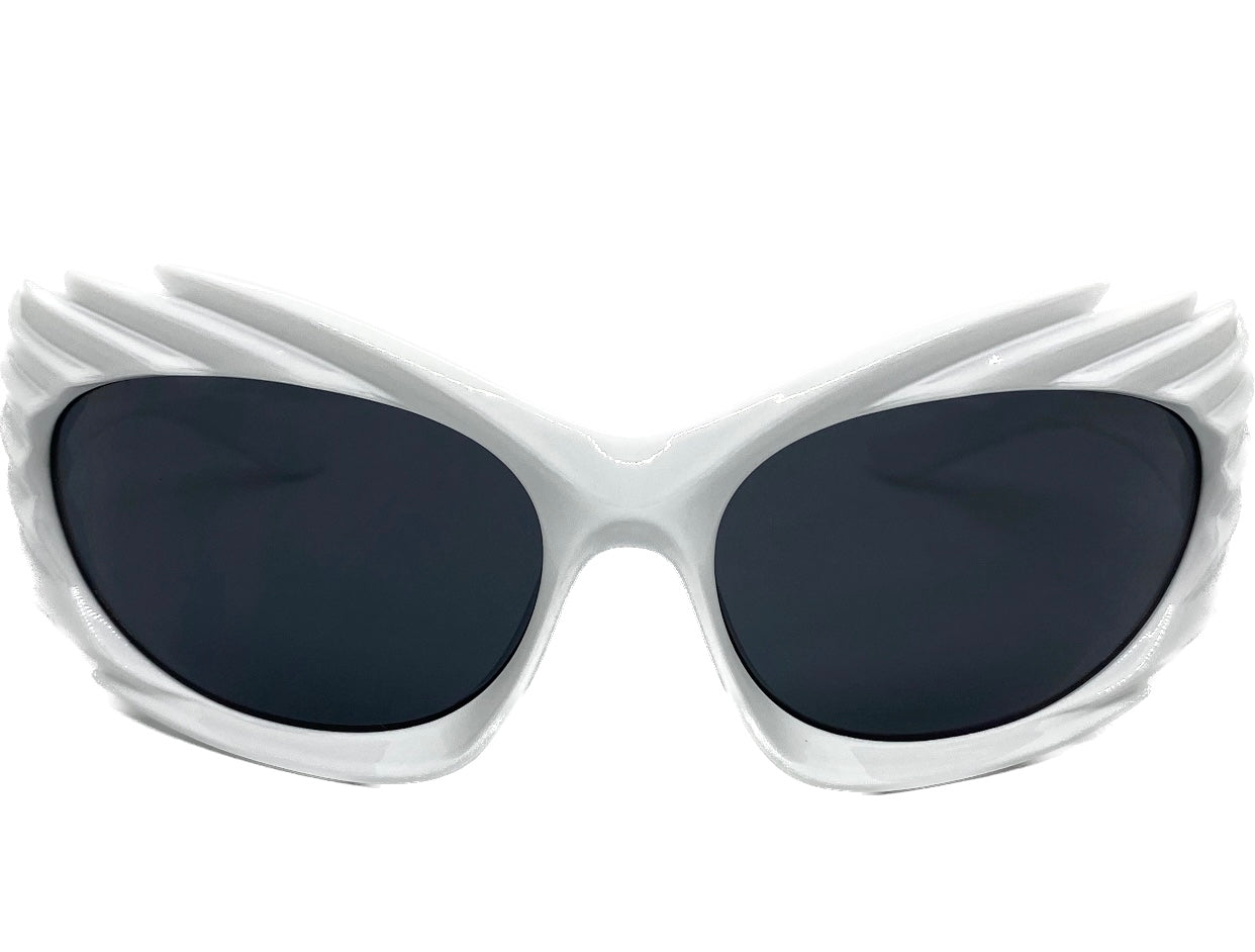 Modern Futuristic Retro Sporty Wrap Around SUNGLASSES Large White Frame 2136