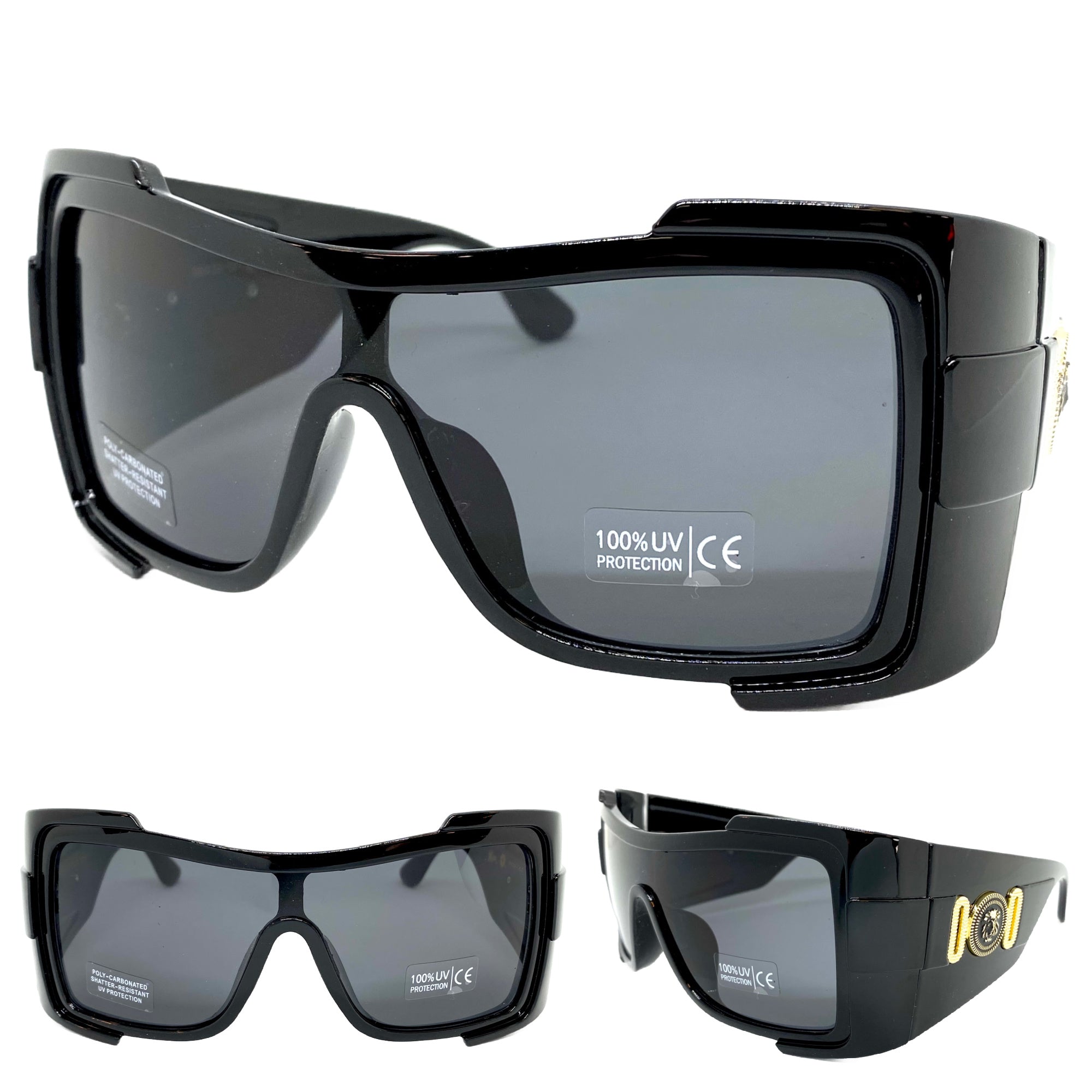 Oversized Modern Retro Wrap Shield Style SUNGLASSES Huge Super Thick Black Frame 1044