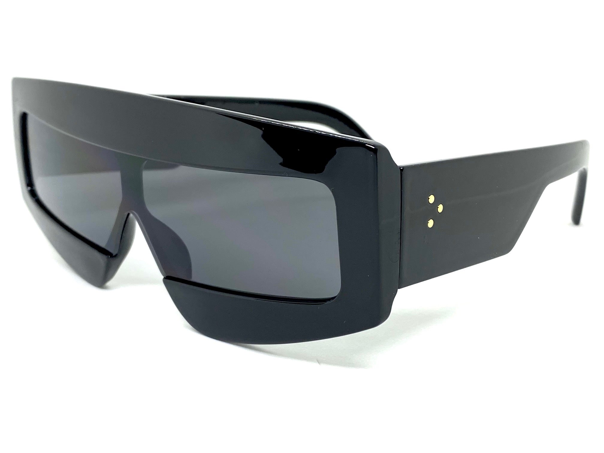 Oversized Modern Retro Shield Style SUNGLASSES Large Black Frame 2131