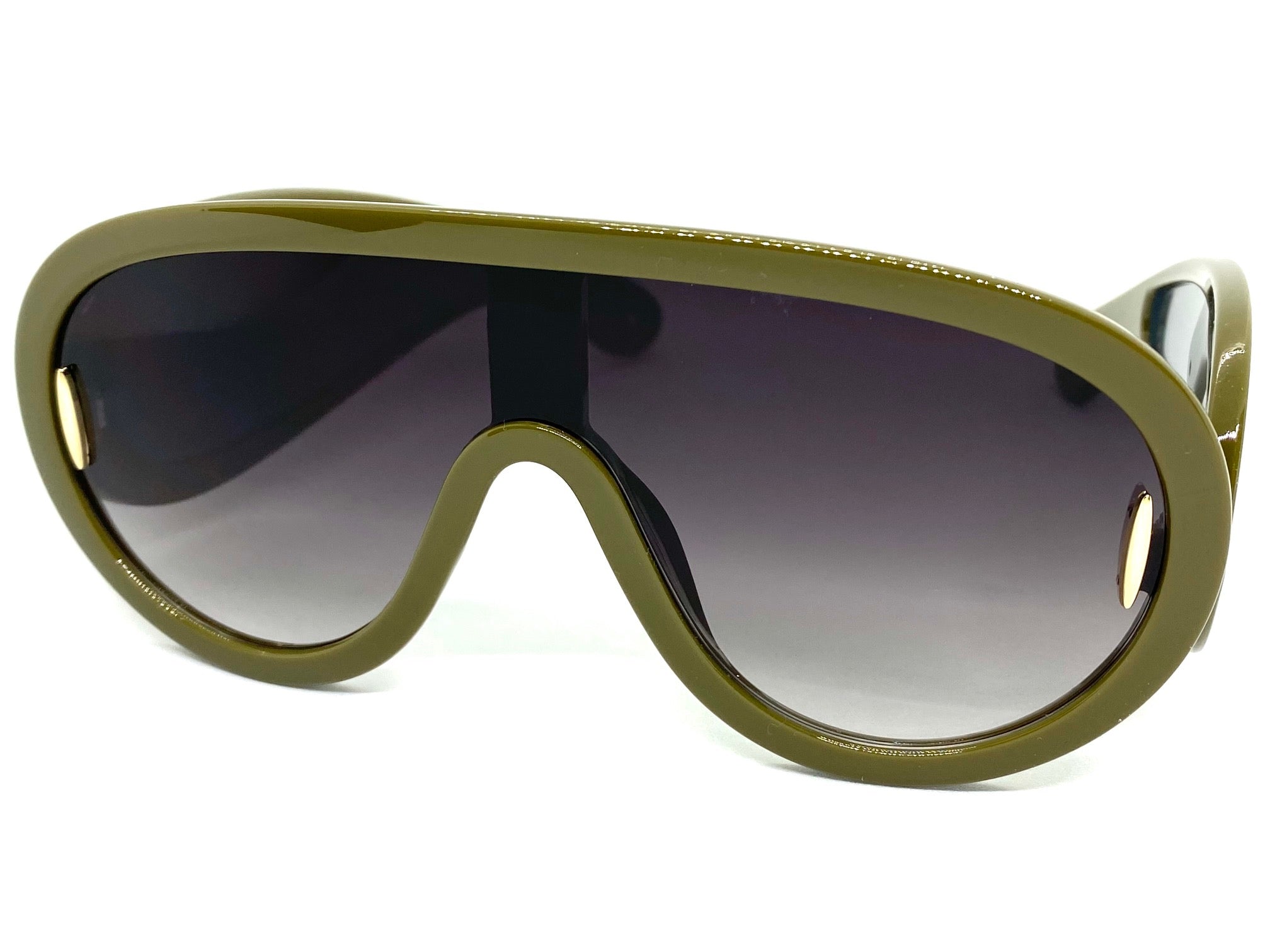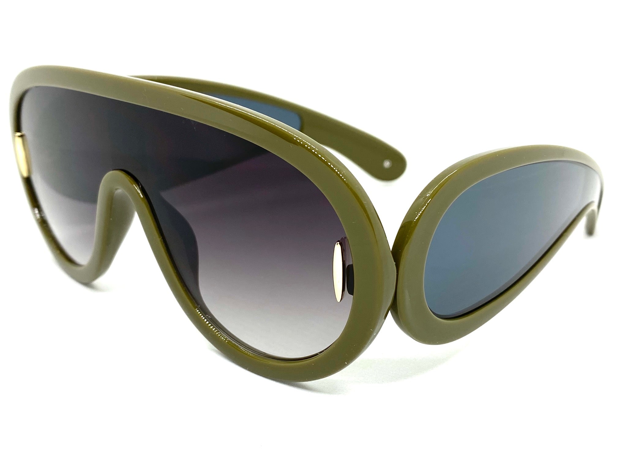 Oversized Modern Retro Shield Style SUNGLASSES Large Green Frame 3020