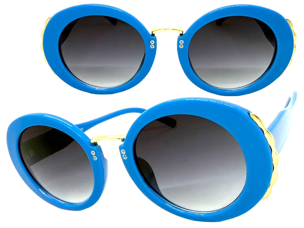 Exaggerated Vintage Retro Funky Hippie Style SUNGLASSES Round Blue & Gold Frame P8216