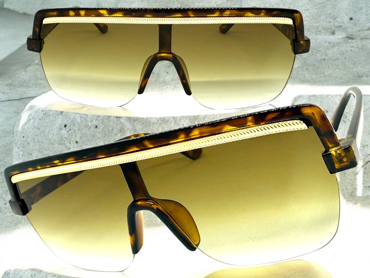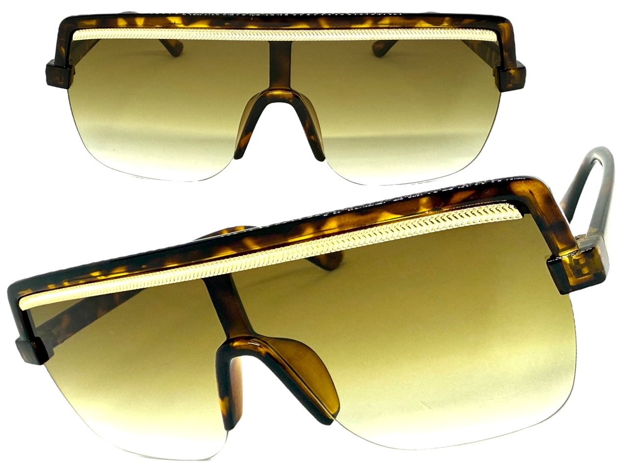 Oversized Elegant Modern Rerto Shield Style SUNGLASSES Large Tortoise Frame 8300