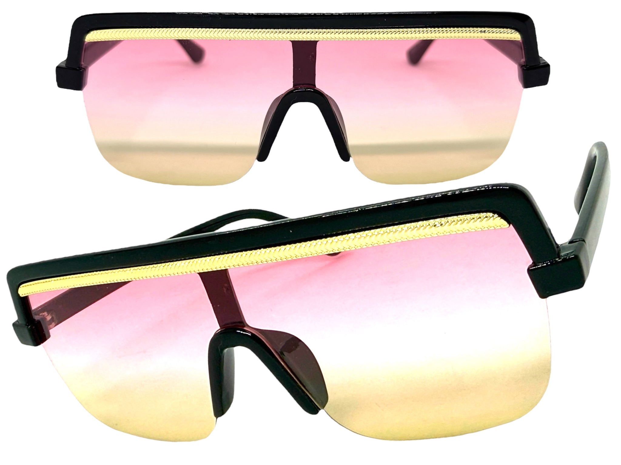 Oversized Elegant Modern Rerto Shield Style SUNGLASSES Large Black Frame 1032