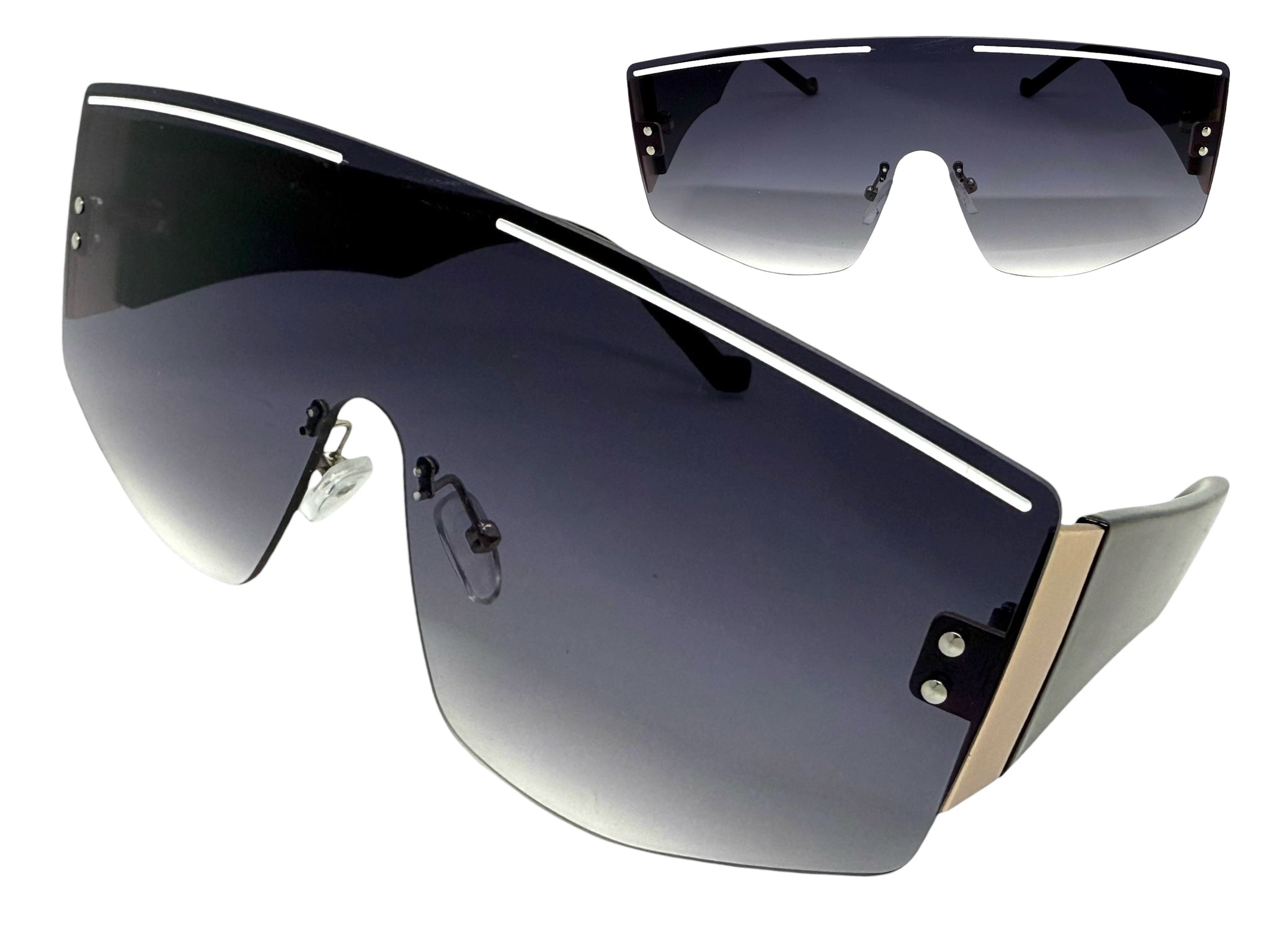 Oversized Futuristic Modern Retro Shield Style SUNGLASSES Large Flat Gradient Lens 10858