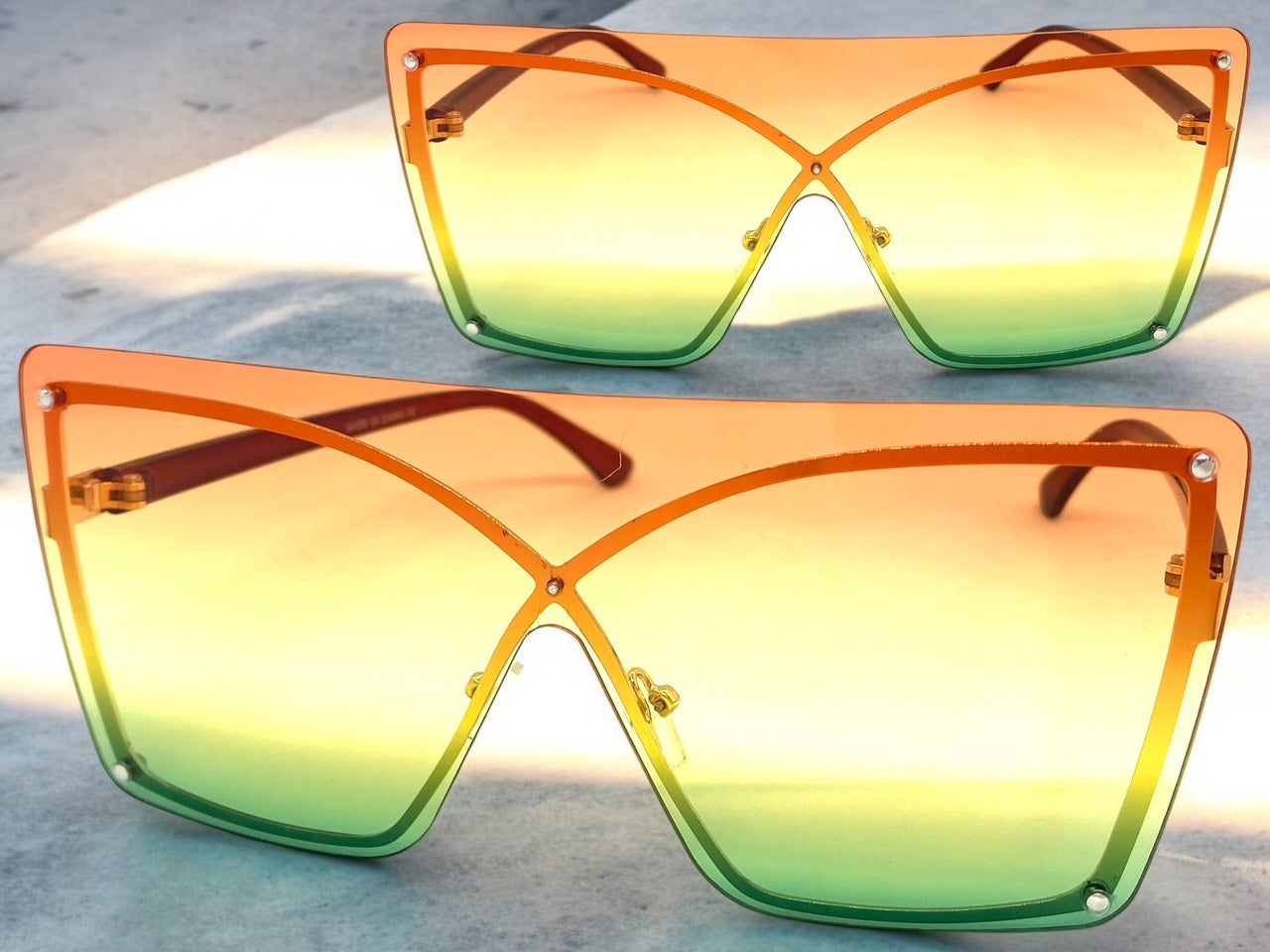 Oversized Exaggerated Modern Retro Shield Style SUNGLASSES Large Flat Multicolor Lens E0443