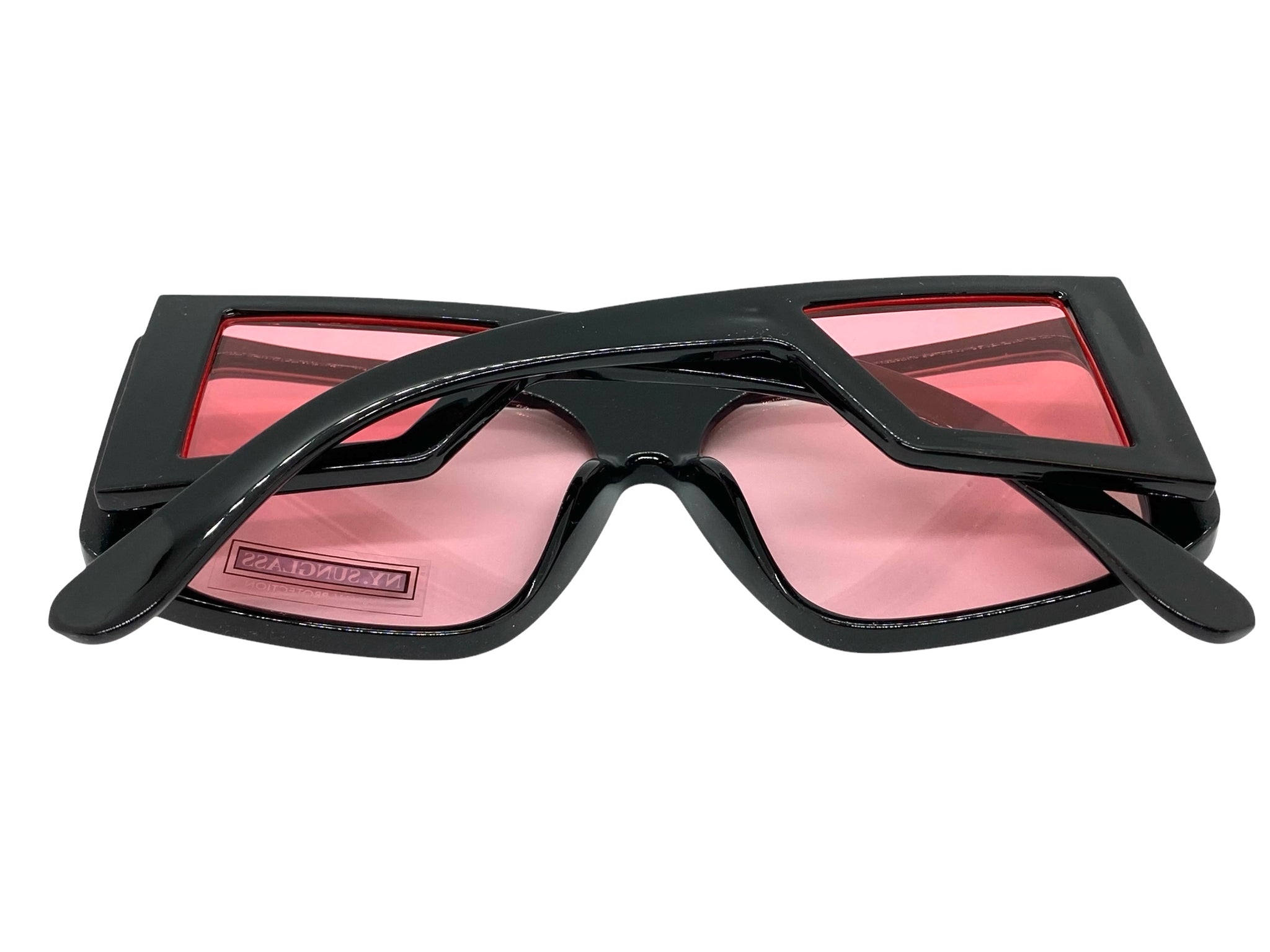 Oversized Modern Retro Shield Style SUNGLASSES Black Frame Pink Lens 9227