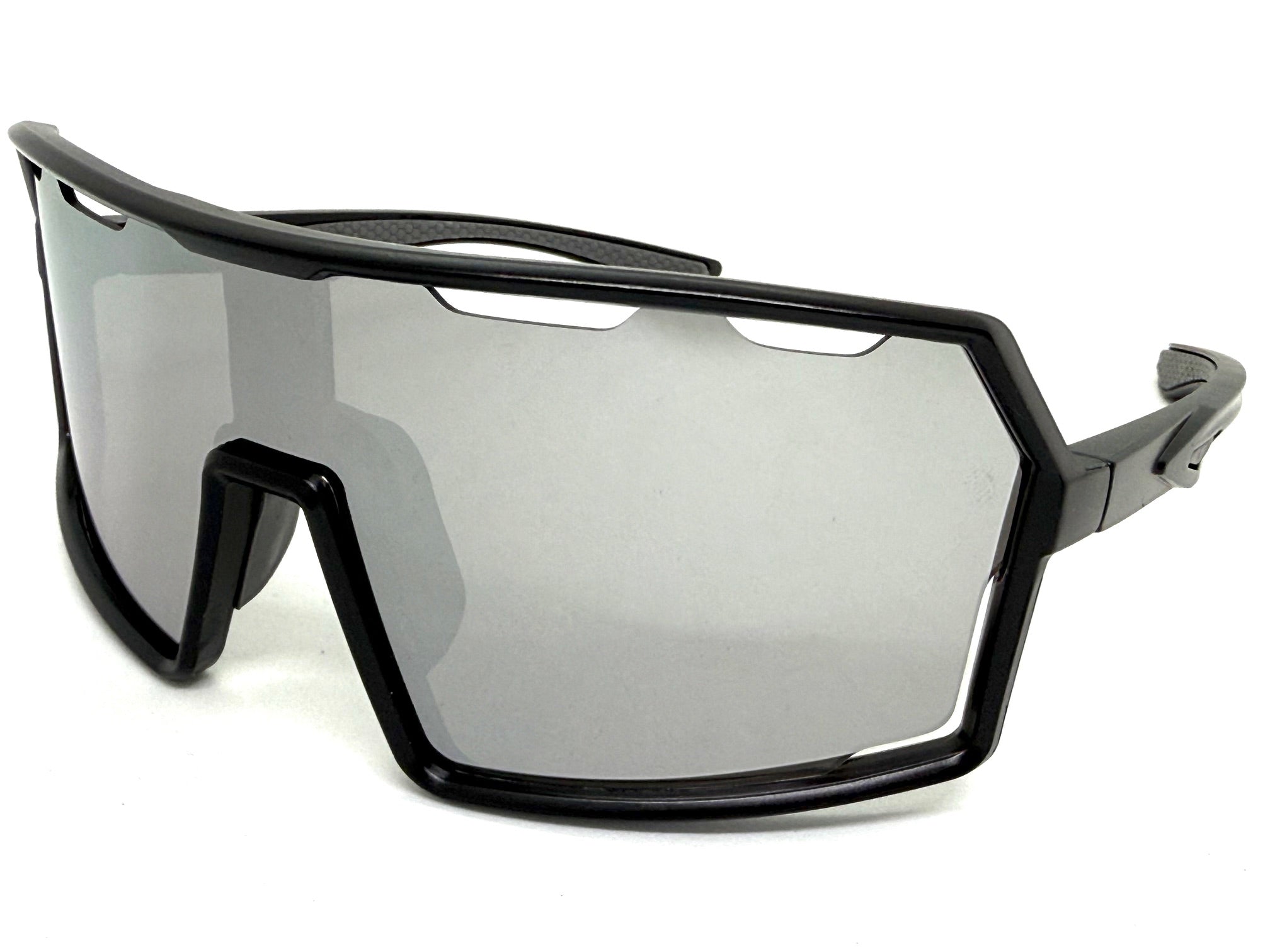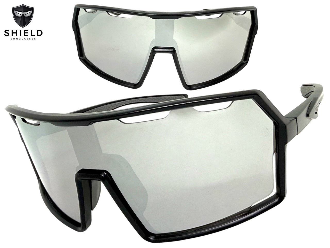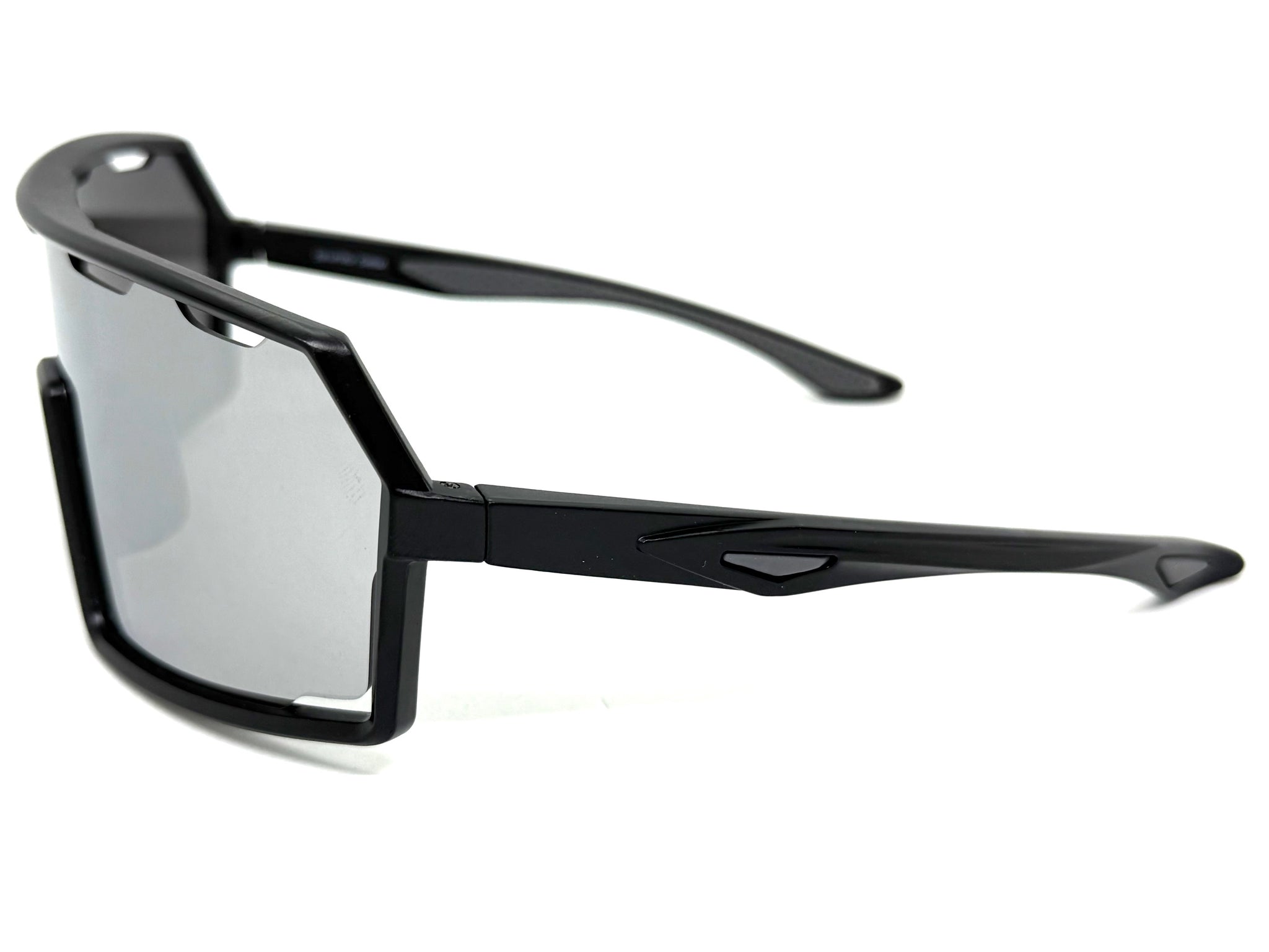 Oversized Retro Sporty Wrap Around Shield Style SUNGLASSES Large Black Frame - Silver Lens 5314