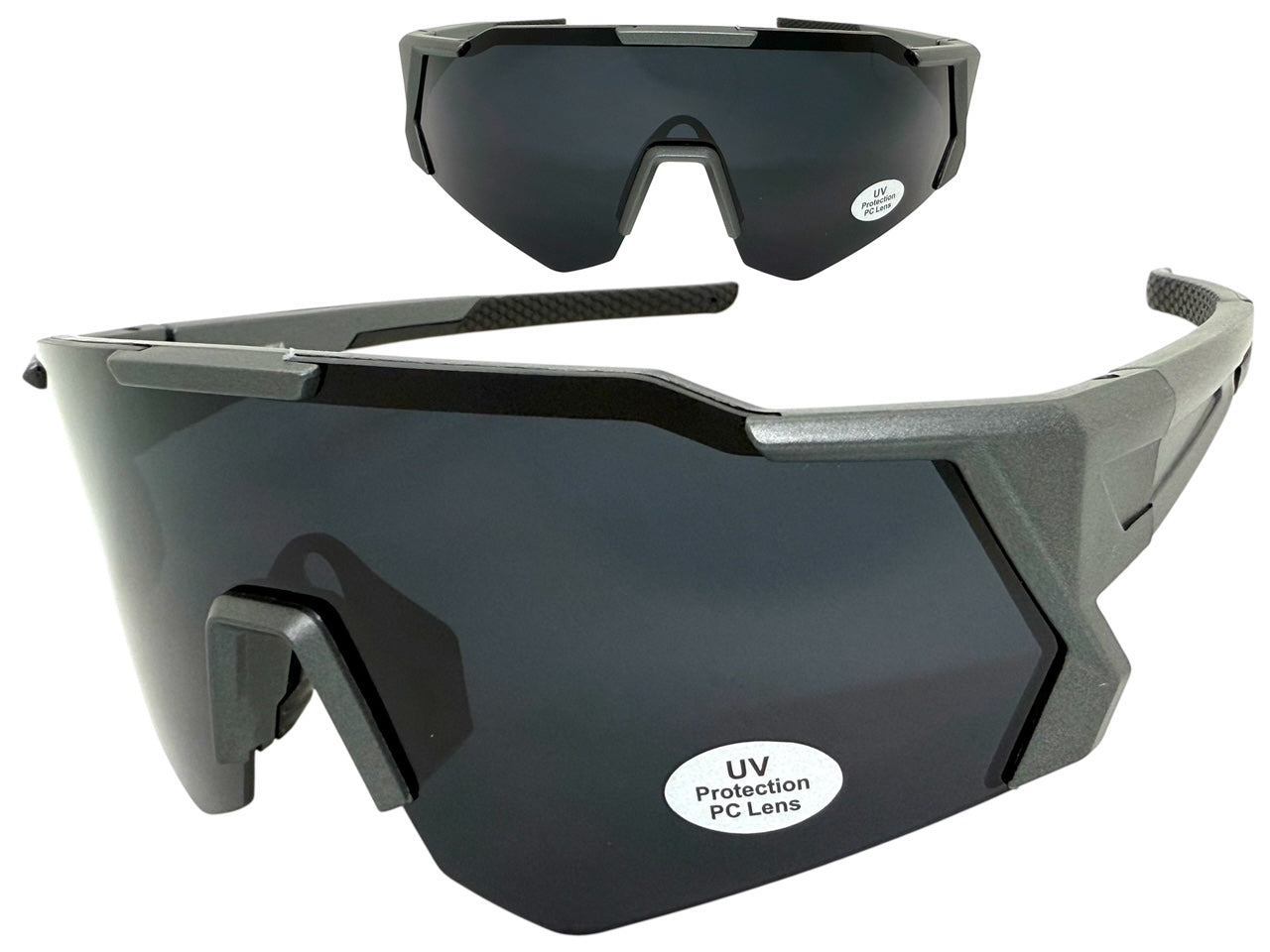 Oversized Retro Sporty Wrap Around Shield Style SUNGLASSES Large Gray Frame - Dark Lens 5331