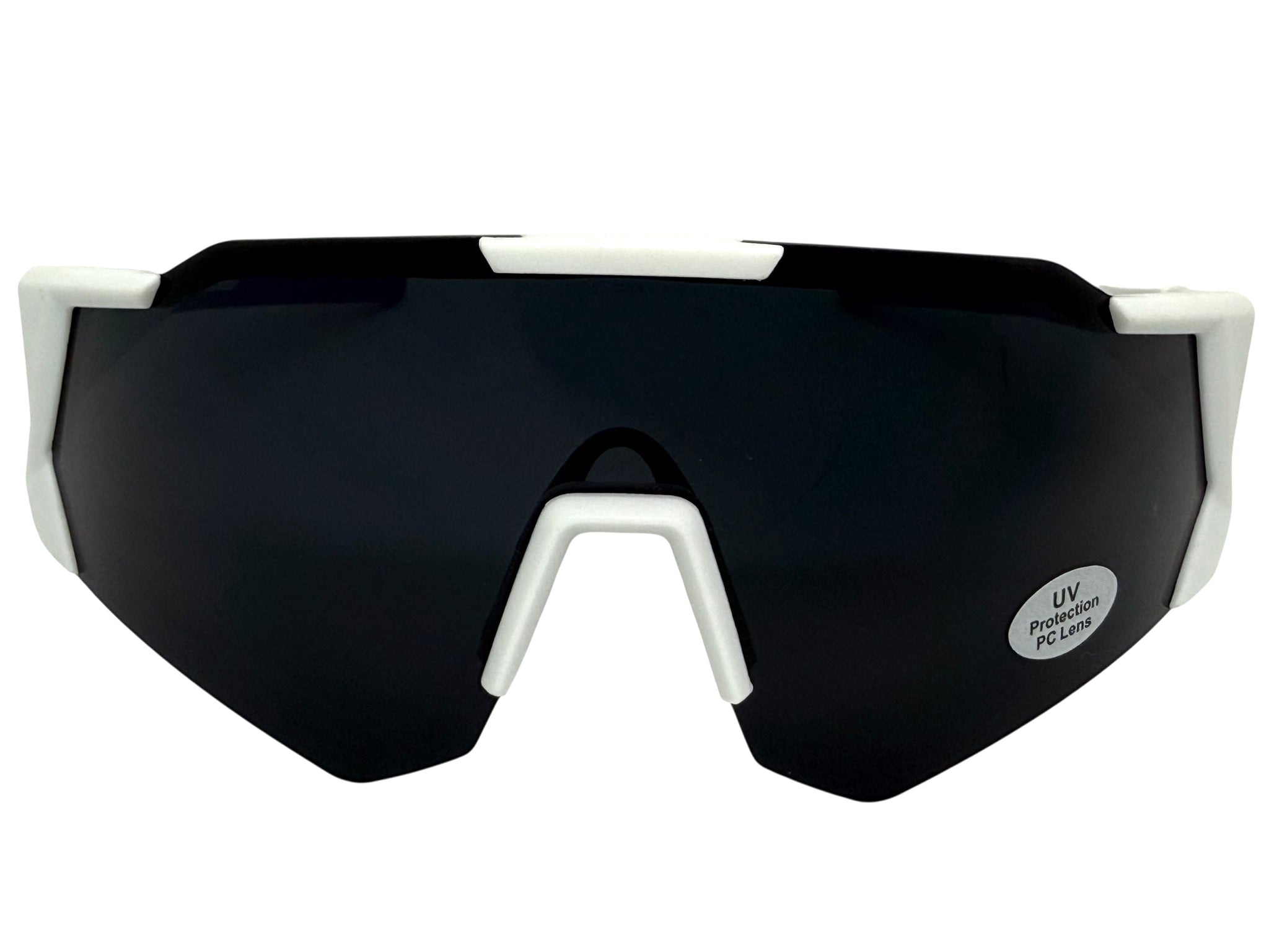 Oversized Retro Sporty Wrap Around Shield Style SUNGLASSES Large White Frame - Dark Lens 5331