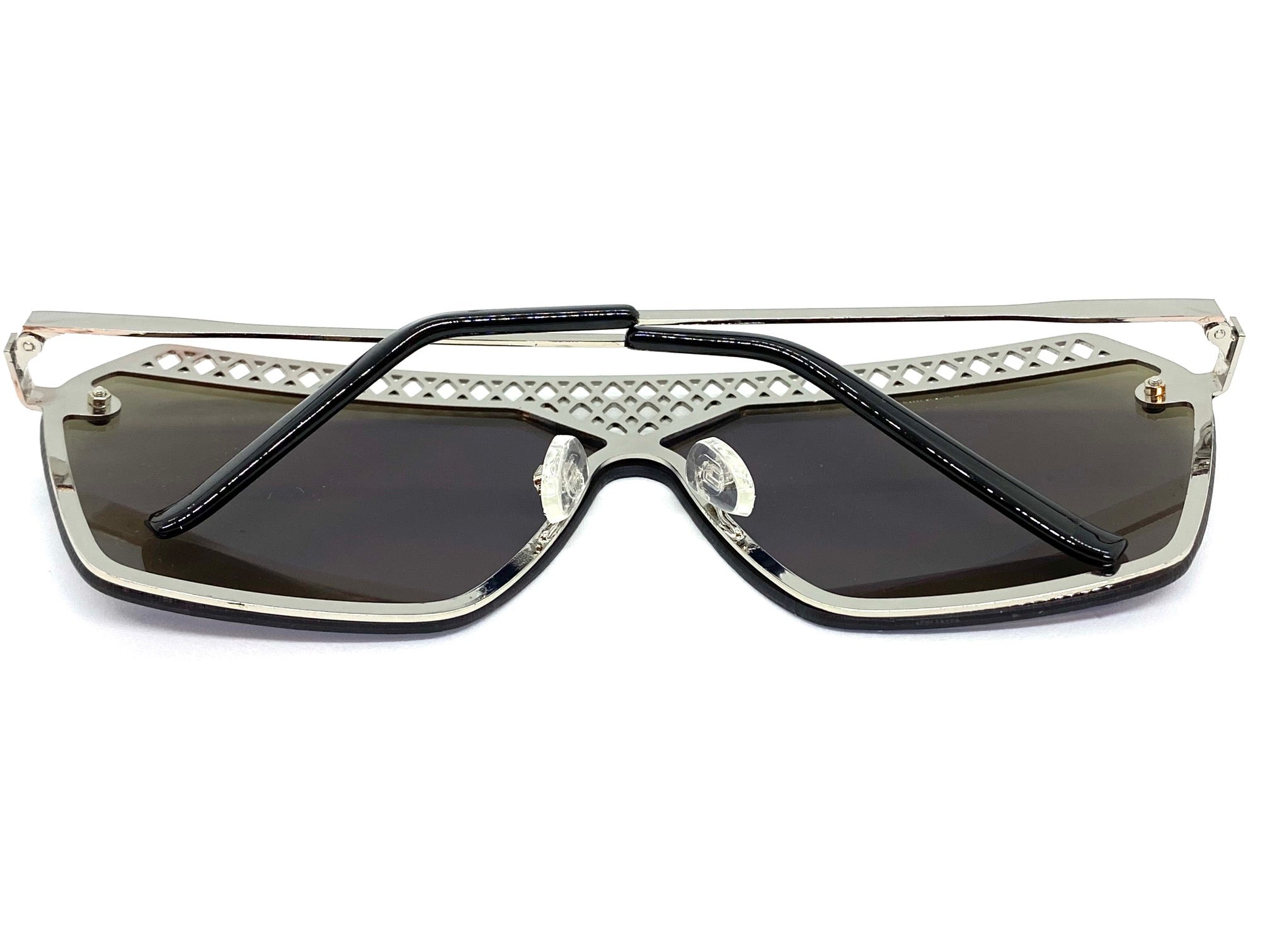 Sleek Modern Retro Shield Style SUNGLASSES Silver Frame Blue Lens 10415