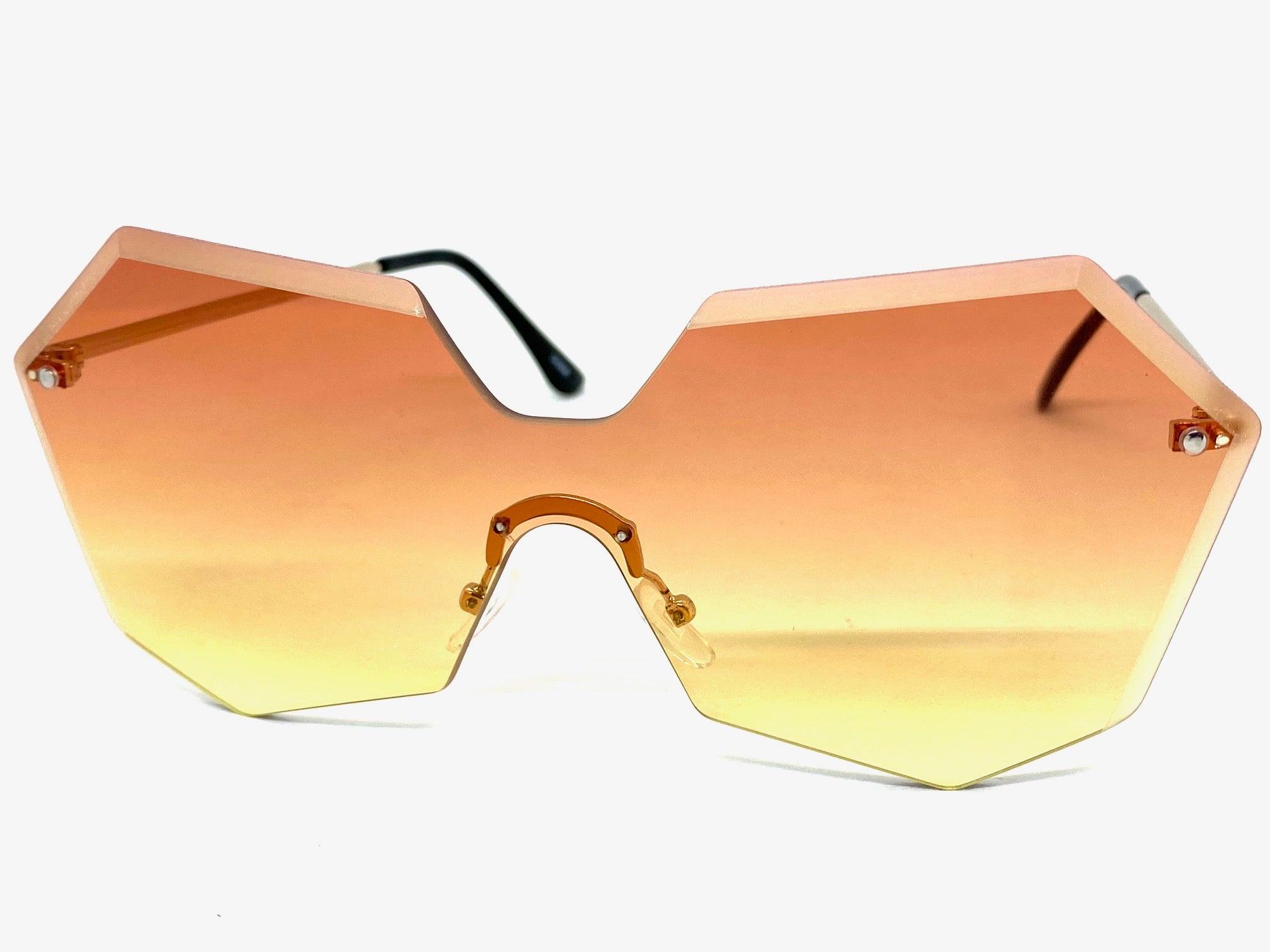 Sleek Modern Retro Shield Style SUNGLASSES Gold Rimless Frame 4683