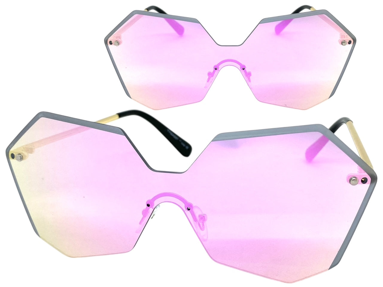 Sleek Modern Retro Shield Style SUNGLASSES Gold Rimless Frame 7756