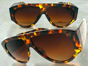 Oversized Vintage Retro Aviator Style SUNGLASSES Large Tortoise & Gold Frame 26008
