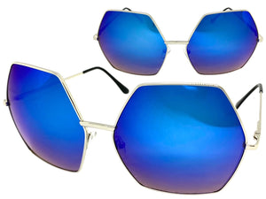 Oversized Exaggerated Vintage Retro Style SUNGLASSES Large Octagon Silver Frame 4150