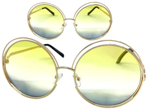 Oversized Exaggerated Vintage Retro Style SUNGLASSES Large Round Gold Frame 3590