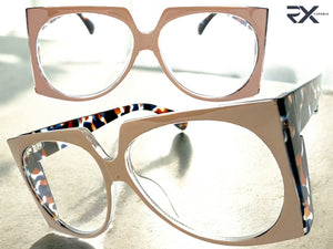 Oversized Vintage Retro Style Clear Lens EYEGLASSES Large Square Khaki Frame 5693