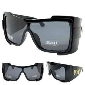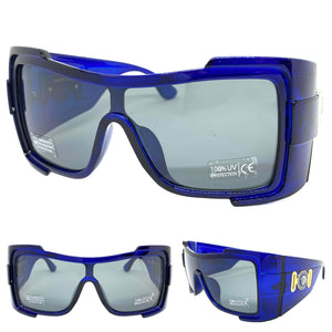 Oversized Modern Retro Wrap Shield Style SUNGLASSES Huge Super Thick Blue Frame 1044