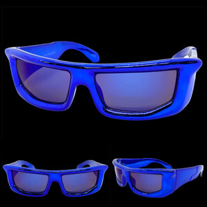 Sleek Modern Futuristic Biker Sporty Wrap SUNGLASSES Thick Blue Chrome Frame 80622