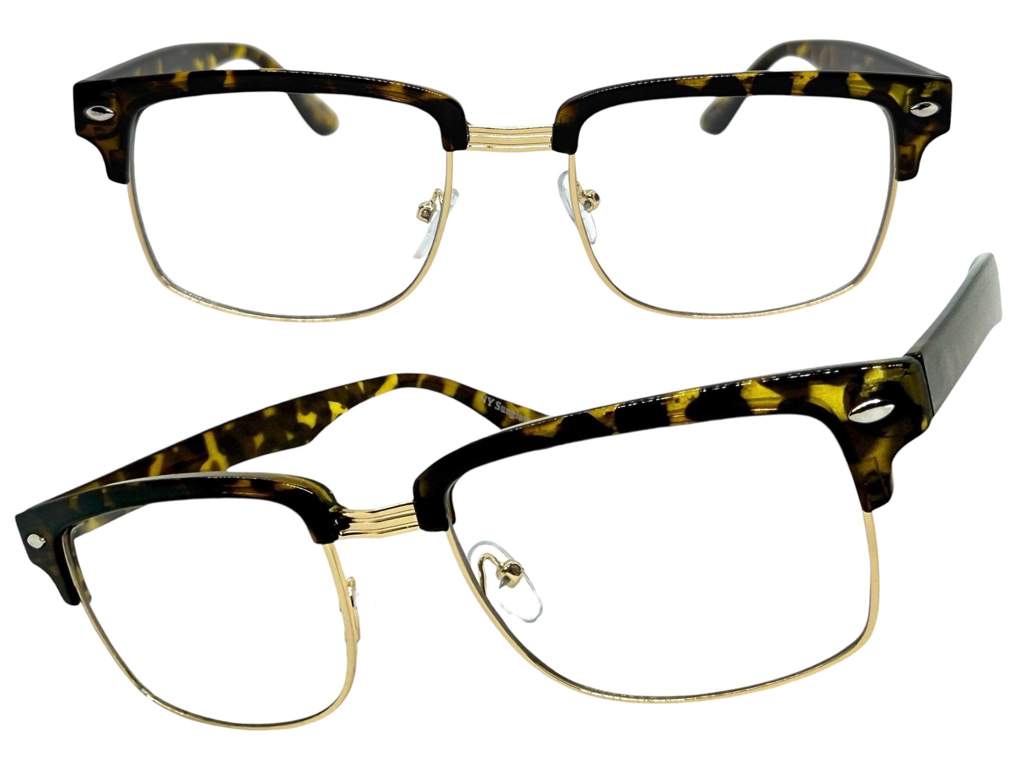 Classic Sophisticated Vintage Retro Style Clear Lens EYEGLASSES Square Tortoise & Gold Frame 5450