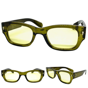 Classic Elegant Vintage Retro Style SUNGLASSES Square Thick Olive Green Frame 5015
