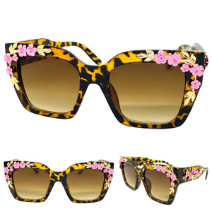 Classic Elegant Vintage Retro Style SUNGLASSES Square Tortoise Floral Frame 96540