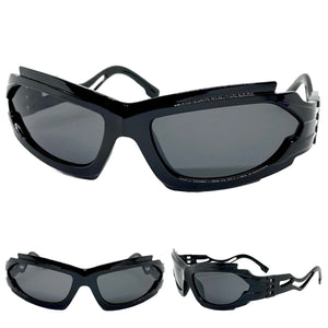 Classic Hardcore Gangster Biker Wrap Around Luxury SUNGLASSES Sleek Gray Frame 1236