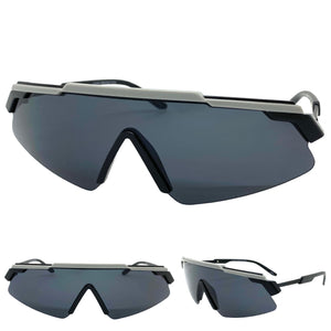Classic Retro Sporty Wrap Around Shield Style SUNGLASSES Sleek Black Frame 80583