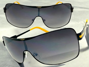 Classic Contemporary Modern Wrap Shield Style SUNGLASSES Sleek Black Frame 3728