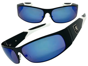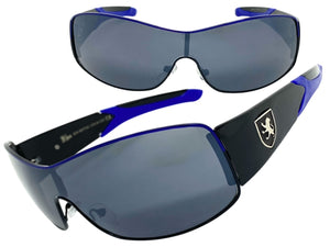 Classic Contemporary Modern Wrap Style SUNGLASSES Sleek Black & Blue Frame 3734