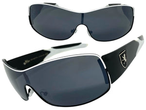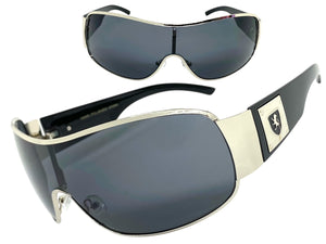 Classic Contemporary Modern Wrap Shield Style SUNGLASSES Sleek Silver Frame 1086