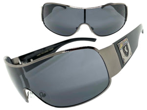 Classic Contemporary Modern Wrap Shield Style SUNGLASSES Sleek Gunmetal Frame 3396